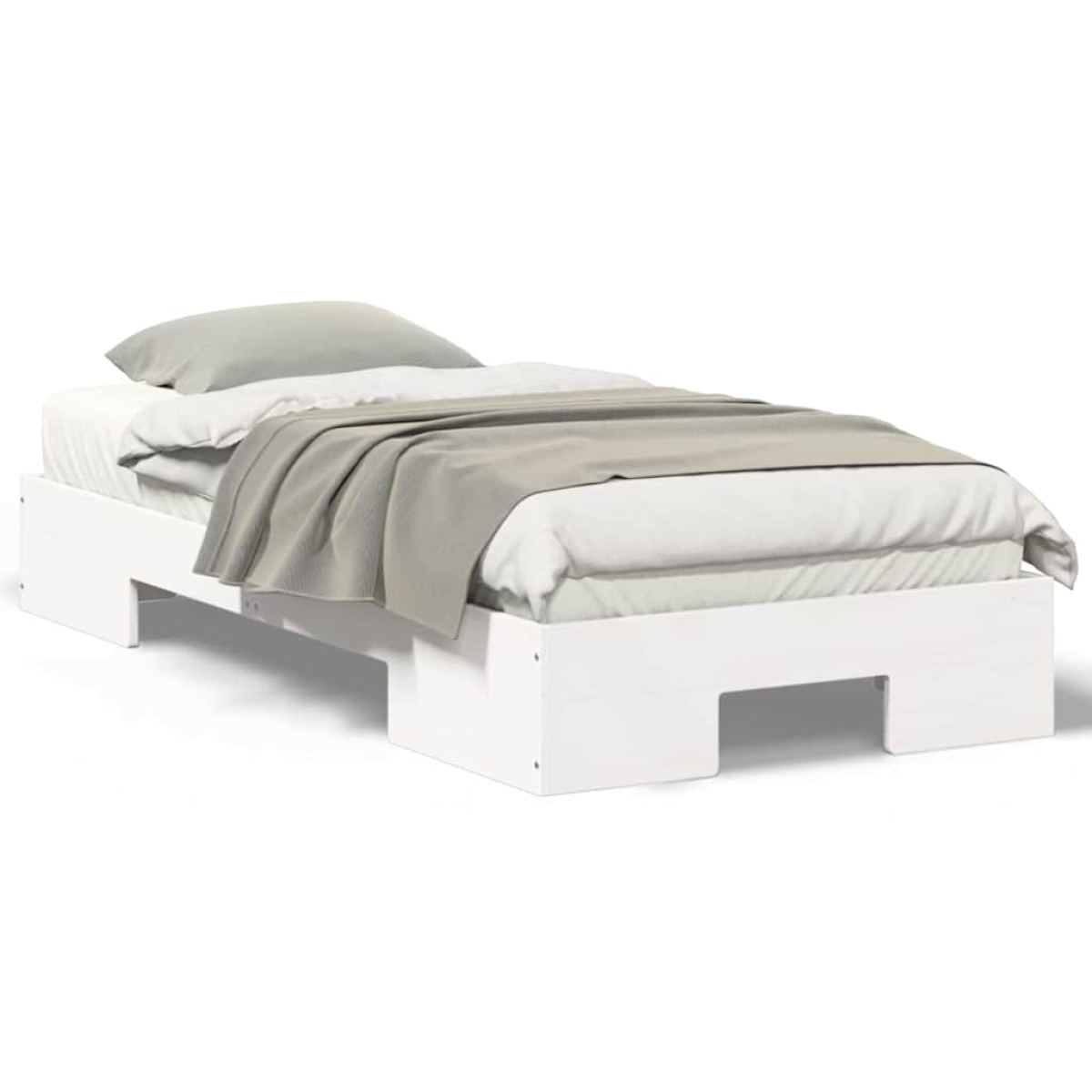 vidaXL Floor Bed Frame with Storage White Solid pine wood