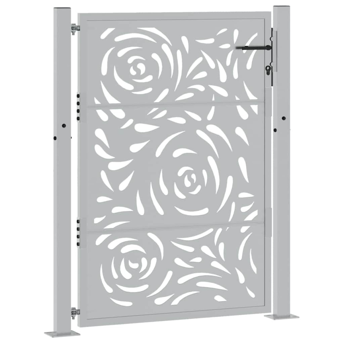 This garden gate, featuring a perfect combination of strength and elegance, makes an ideal entry point for the fence around your garden or patio. Heavy-duty construction: This fence gate is made of weathering steel. Weathering steel is anti-corrosive by its very nature. It develops a rusty protective layer against corrosion when first exposed to atmospheric conditions. Thus, you don't need to paint it. This can help you save on maintenance and repair costs. The distinctive brown colour on the weathering steel will surely be an eye-catcher. Finally, weathering steel is exceptionally durable and will stand up to the test of time.Laser-cut design: The security gate has a beautiful laser-cut design that adds a unique charm to your home.Lockable design: The outdoor gate is equipped with a robust locking system that comes with three matching keys, guaranteeing that the patio gate can be securely locked.Easy to assemble: The entrance gate comes complete with two posts with flange plates and mounting accessories for easy installation.Wide applications: The metal gate is perfect for enhancing garden entrances, driveways, and any property boundaries, combining functionality and visual appeal. Good to know:This product is not rusted yet and has a normal metal colour when you receive it, but rust will develop over time. You could speed up the rusting process by spraying it with soap water and salt water. To keep your clothes stain-free, avoid contact with the developing rust layer.