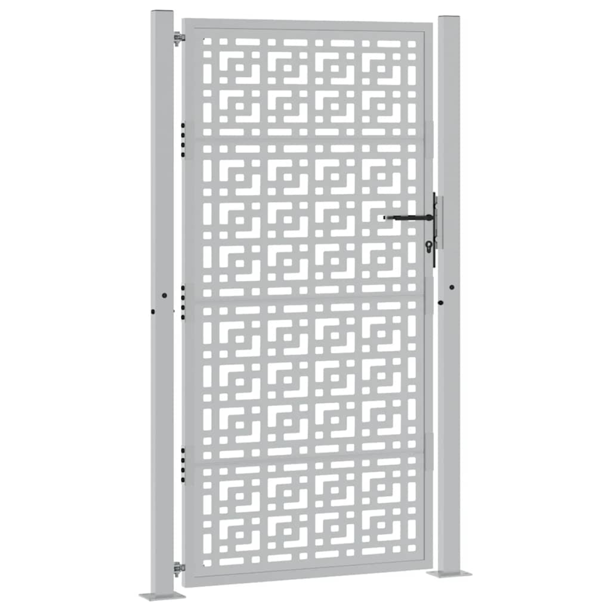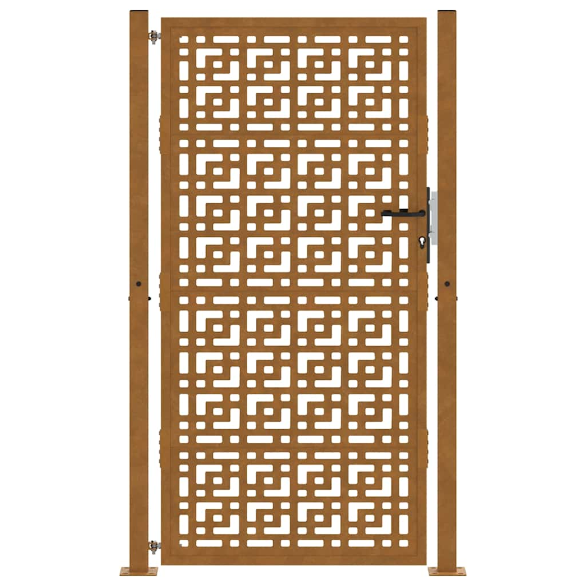 This garden gate, featuring a perfect combination of strength and elegance, makes an ideal entry point for the fence around your garden or patio. Heavy-duty construction: This fence gate is made of weathering steel. Weathering steel is anti-corrosive by its very nature. It develops a rusty protective layer against corrosion when first exposed to atmospheric conditions. Thus, you don't need to paint it. This can help you save on maintenance and repair costs. The distinctive brown colour on the weathering steel will surely be an eye-catcher. Finally, weathering steel is exceptionally durable and will stand up to the test of time.Laser-cut design: The security gate has a beautiful laser-cut design that adds a unique charm to your home.Lockable design: The outdoor gate is equipped with a robust locking system that comes with three matching keys, guaranteeing that the patio gate can be securely locked.Easy to assemble: The entrance gate comes complete with two posts with flange plates and mounting accessories for easy installation.Wide applications: The metal gate is perfect for enhancing garden entrances, driveways, and any property boundaries, combining functionality and visual appeal. Good to know:This product is not rusted yet and has a normal metal colour when you receive it, but rust will develop over time. You could speed up the rusting process by spraying it with soap water and salt water. To keep your clothes stain-free, avoid contact with the developing rust layer.