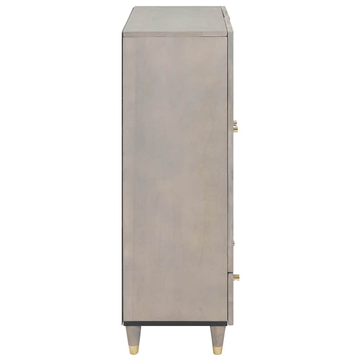 This stylish highboard mixes good looks with practicality, slotting right into your living room, dining space, or anywhere that could use some smart storage. Its modern, textured design catches the eye while providing loads of space for your daily essentials, decorative bits, or prized collections. Shaped in a rectangle, the highboard highlights the rich colour and natural charm of solid mango wood, paired with clean lines and polished finishes to subtly enhance your interior. Premium Solid Mango Wood: Feel the sturdy vibe and classy finish of our highboard made from solid mango wood. Not only does this material bring a warm glow to your space, but it’s also durable enough to keep your stuff safe all year round. With this quality wood, you’re getting a solid mix of strength and timeless design that shines in any room. Smart Storage Solutions: Check out the roomy interior designed with your organisation needs in mind. With loads of compartments and shelves, the highboard can handle everything from fancy china to books and decorative trinkets, making it a stylish centrepiece in your pad. This thoughtful design maximises space, turning your living area into a chic and efficient sanctuary. Modern Hinge Doors: The hinge doors let you access your things smoothly, marrying practicality with sleek style. Their minimalist look fits right in with the highboard’s modern vibe, giving your room a trendy edge. You’ll be elevating your home’s look with this touch of sophistication. Designed for Versatile Use: Whether it’s in the living room or dining area, this highboard effortlessly boosts its surroundings. It’s perfect for displaying treasured items or keeping daily essentials organised, meeting your ever-changing lifestyle and design goals. Effortless Maintenance: Keeping this gorgeous piece looking its best is easy peasy. A quick wipe with a damp cloth clears away dust and dirt, ensuring it stays shiny and fresh. This minimal upkeep lets you enjoy the highboard with fewer worries for years to come.