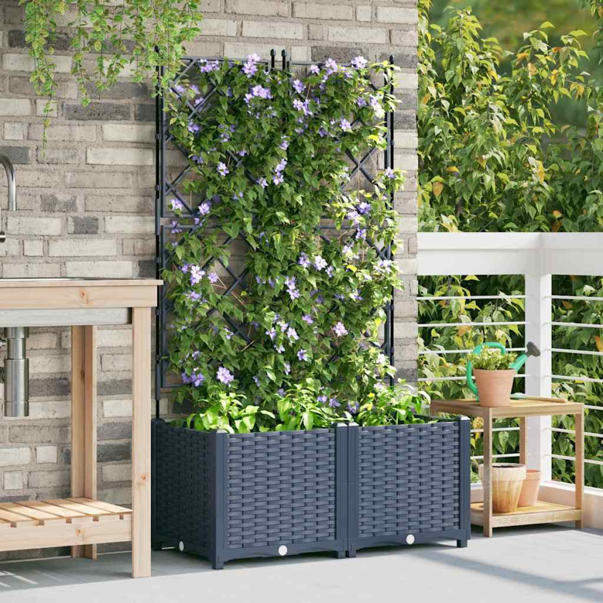 vidaXL Garden Planter with Trellis 2 pcs Grey 80 x 40 x 143 cm PP