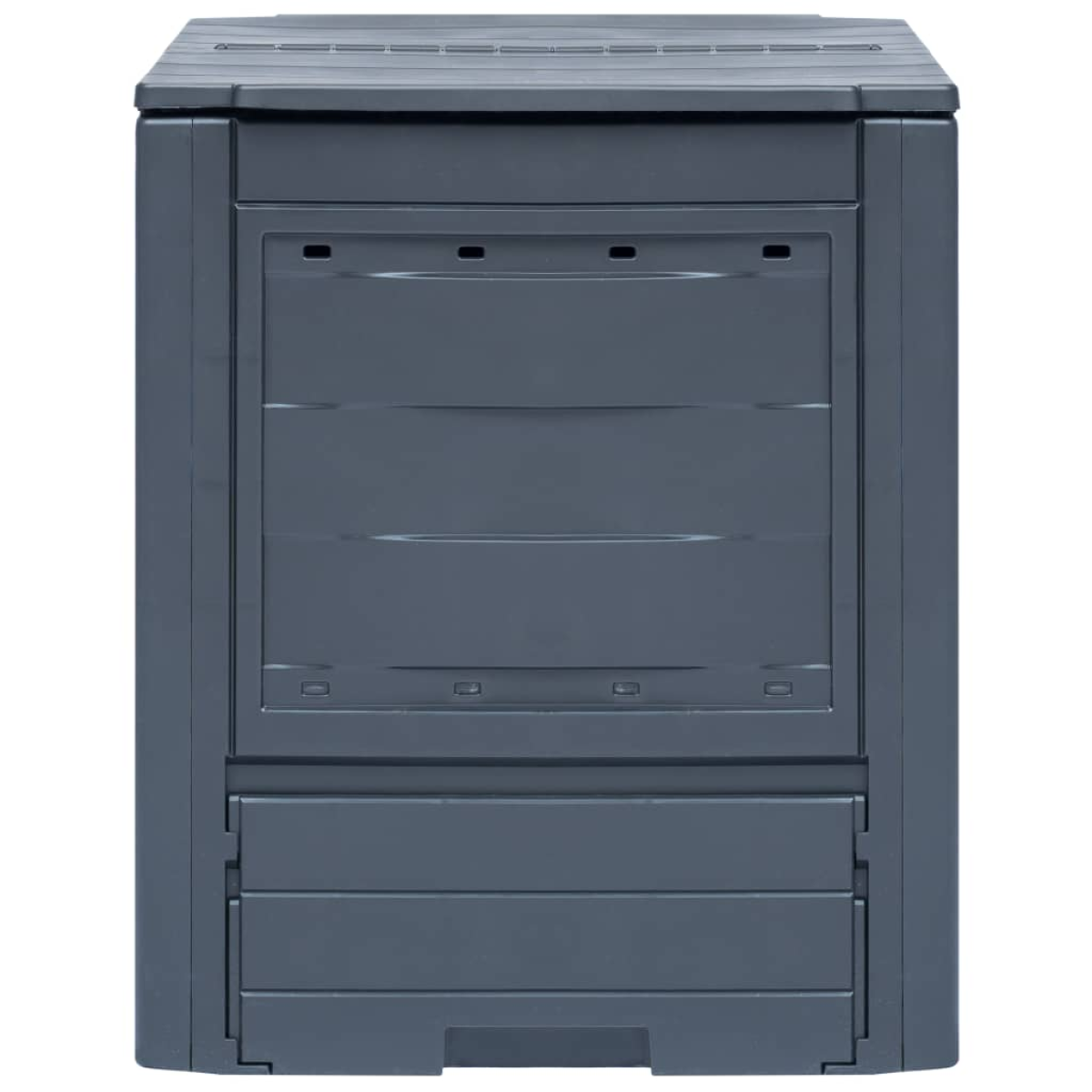 Our garden composter will surely be a perfect option to collect organic waste, including leaves, weeds, and lawn clippings. The compost bin is made of plastic which makes it UV and weather resistant. The unit has a lightweight body as well as a neat appearance. It has a split lid for optimal irrigation and ventilation. Thanks to ventilation holes in side part, this waste box can exquisitely achieve optimal composting. This square composter will come in very handy when recycling, and meanwhile it will blend naturally into any garden.