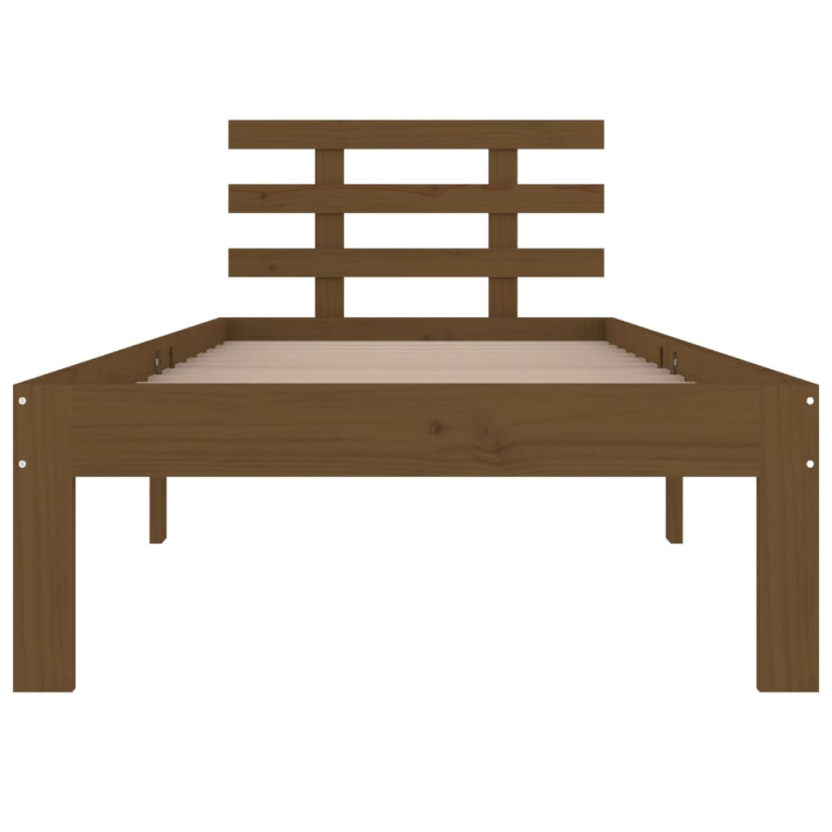 Take the modern route to your bedroom with this wooden bed frame! It makes a practical and decorative addition to your interior. Premium solid wood: Solid pine wood is a beautiful natural material. Pine wood has a straight grain, and the knots give the material its signature, rustic look.Sturdy bed frame: The wooden frame ensures sturdiness and stability. The plywood slats provide good weight distribution, ensuring that the mattress stays in place with every twist and turn of your body during sleep.Comfortable headboard: The classic headboard lets you rest comfortably while reading or watching a movie.Suitable condition: This single bed is a great solution for small spaces, multi-functional rooms, single sleepers and older children. Whatever your needs or decor plans are, the single bed meets all your needs! Note:The delivery includes a bed frame only. The mattress is not included. You can check our shop for the matching mattresses.This bed frame is suitable for a mattress measuring 100 x 200 cm.