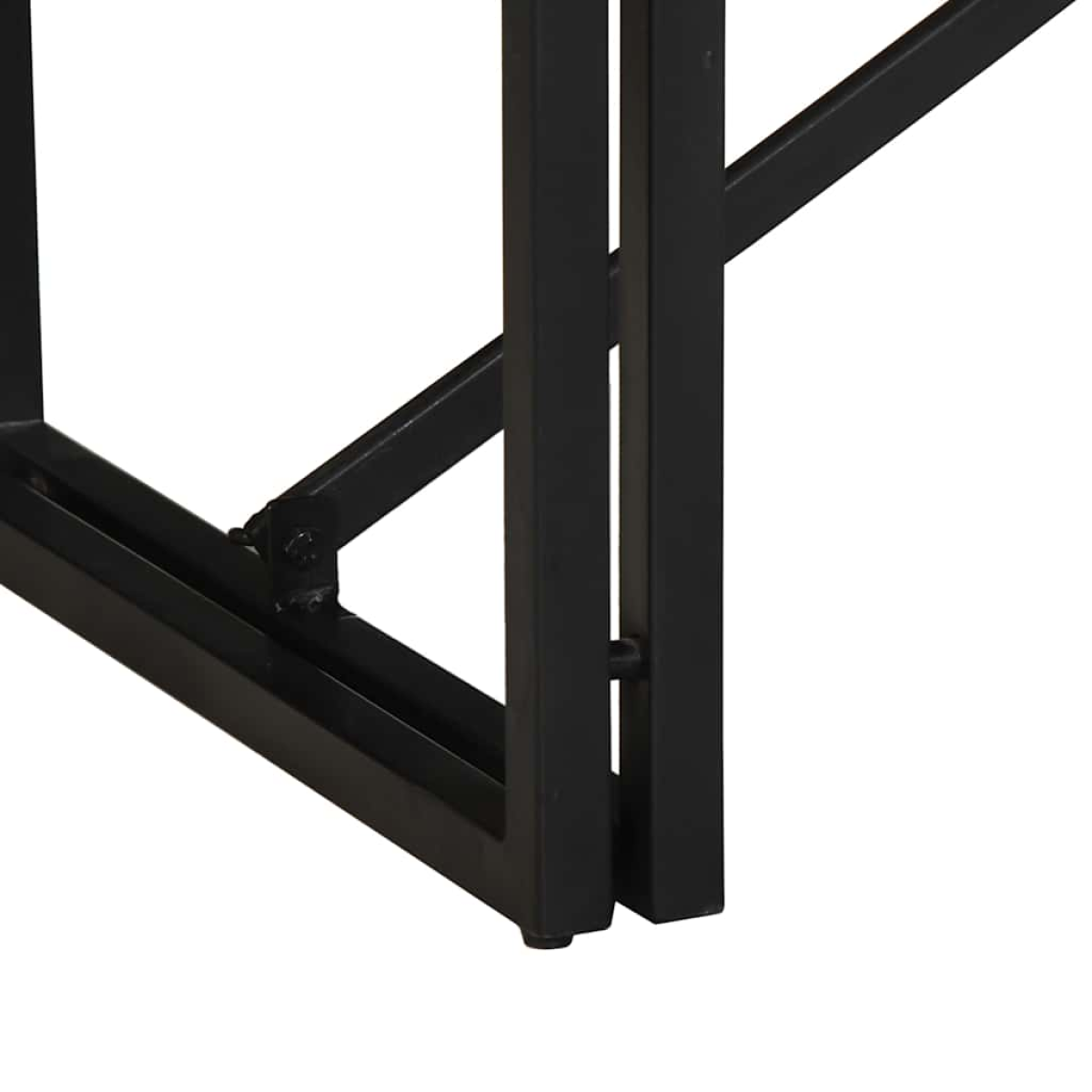 Relax and enjoy entertaining your family and friends around this coffee table! Robust and stable: Solid reclaimed wood consists of reused timbers such as teak, mango wood, pinewood, and beech. These materials are recycled from old buildings such as factories, sheds, and boats. Signs of wear and visible grain structure give each piece its own history and a unique look.Stable and long-lasting frame: The powder-coated iron frame of the table enhances your interior with an industrial style and provides exceptional durability, stability and resistance to corrosion.Stable and sturdy tabletop: The sturdy tabletop is ideal for placing your drinks or any other necessities you need close at hand. Good to know:Each item is unique with variations in colours and grains. The delivery is random, ensuring the exclusivity and individuality of your product.