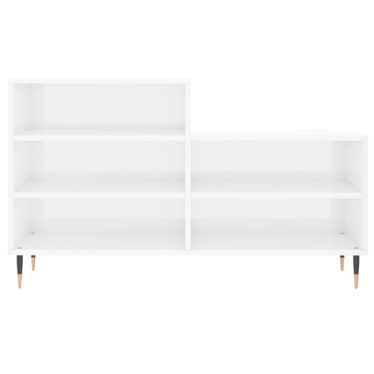 Keep your shoes away from dust and cluttering to create a tidy environment with this elegant shoe cabinet! Durable material: The engineered wood is of exceptional quality with smooth surface and also features strength, stability and resistance to moisture. Made of engineered wood, the shoe rack is easy to clean.Ample storage space: The shoe storage has 5 compartments, providing ample storage space for keeping your shoes and other items well organised.Sturdy top: The top of the shoe cupboard is ideal for displaying decorative objects, photo frames, or potted plants.Metal legs: The metal legs add a modern and calm style to your interior while ensuring stability. Warning:To prevent it being overturned, this product must be used with the provided wall attachment device.