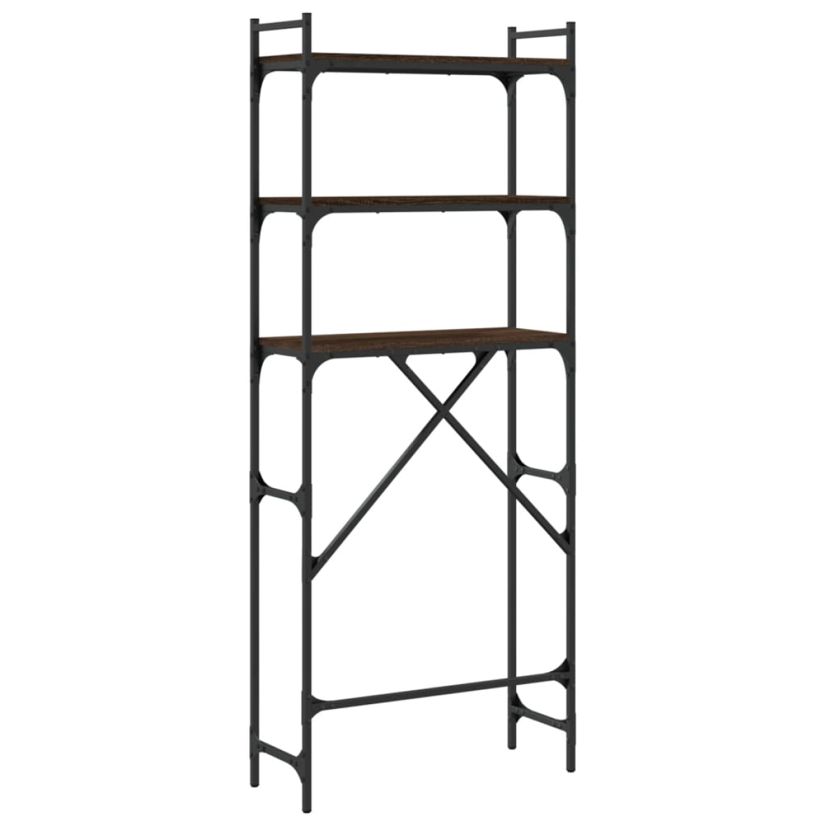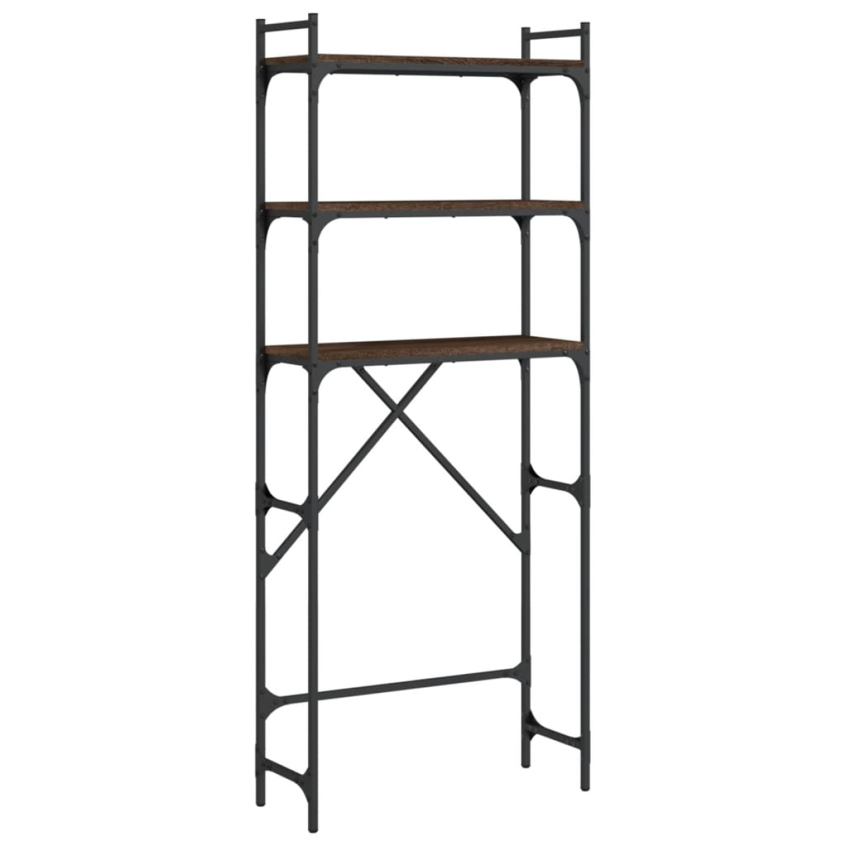 This 3-tier washing machine shelf is a perfect solution to create extra storage spaces for an overcrowded bathroom or laundry room. Durable material: The engineered wood is of exceptional quality with smooth surface and also features strength, stability and resistance to moisture. Made of engineered wood, the bathroom shelf is easy to clean.Ample storage space: The bathroom storage features 3 shelves, offering ample space to easily hold your essential cleaning supplies such as soap, laundry detergent, fabric softener, and more.Space-saving design: The bathroom organiser is designed to be placed above the washing machine or toilet, fitting well in small spaces and making it ideal for small bathrooms and laundry rooms.Adjustable feet: The adjustable feet with plastic pads keep the toilet stand balanced on uneven ground and increase stability.Metal frame: The metal frame adds an industrial style to your interior while ensuring durability and stability. Warning:To prevent it being overturned, this product must be used with the provided wall attachment device. Good to know:Screws and plugs for inside the wall are not included. We advise to find and use screws and plugs suitable specifically for your walls. If you're not sure, you can consult with a professional. Please read and follow each step of the instructions.