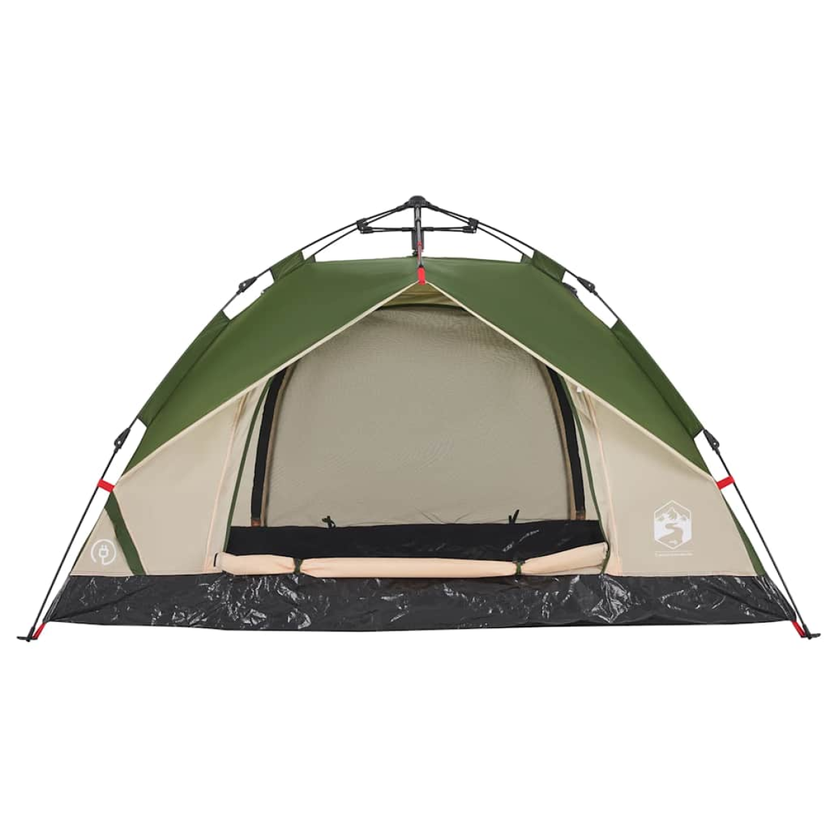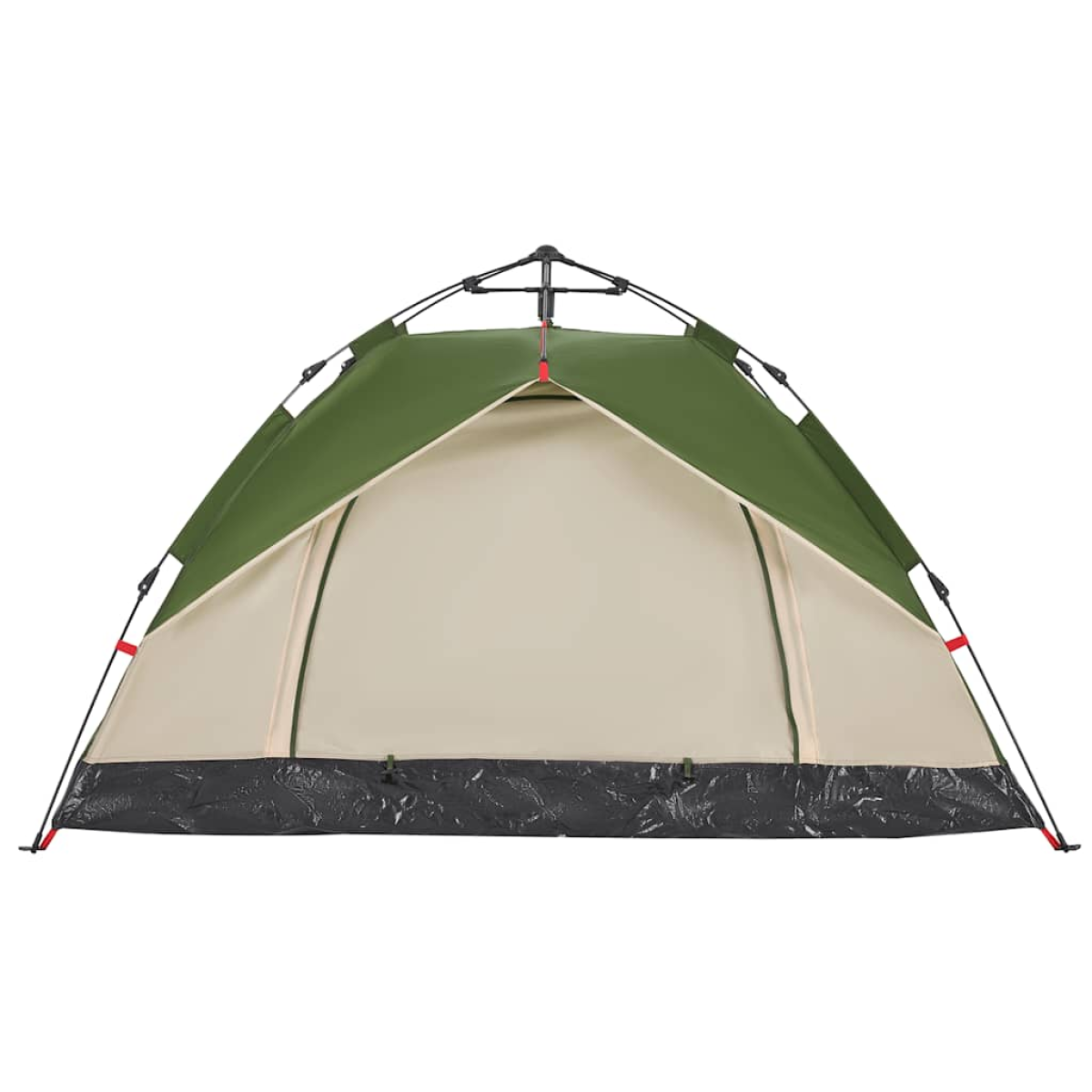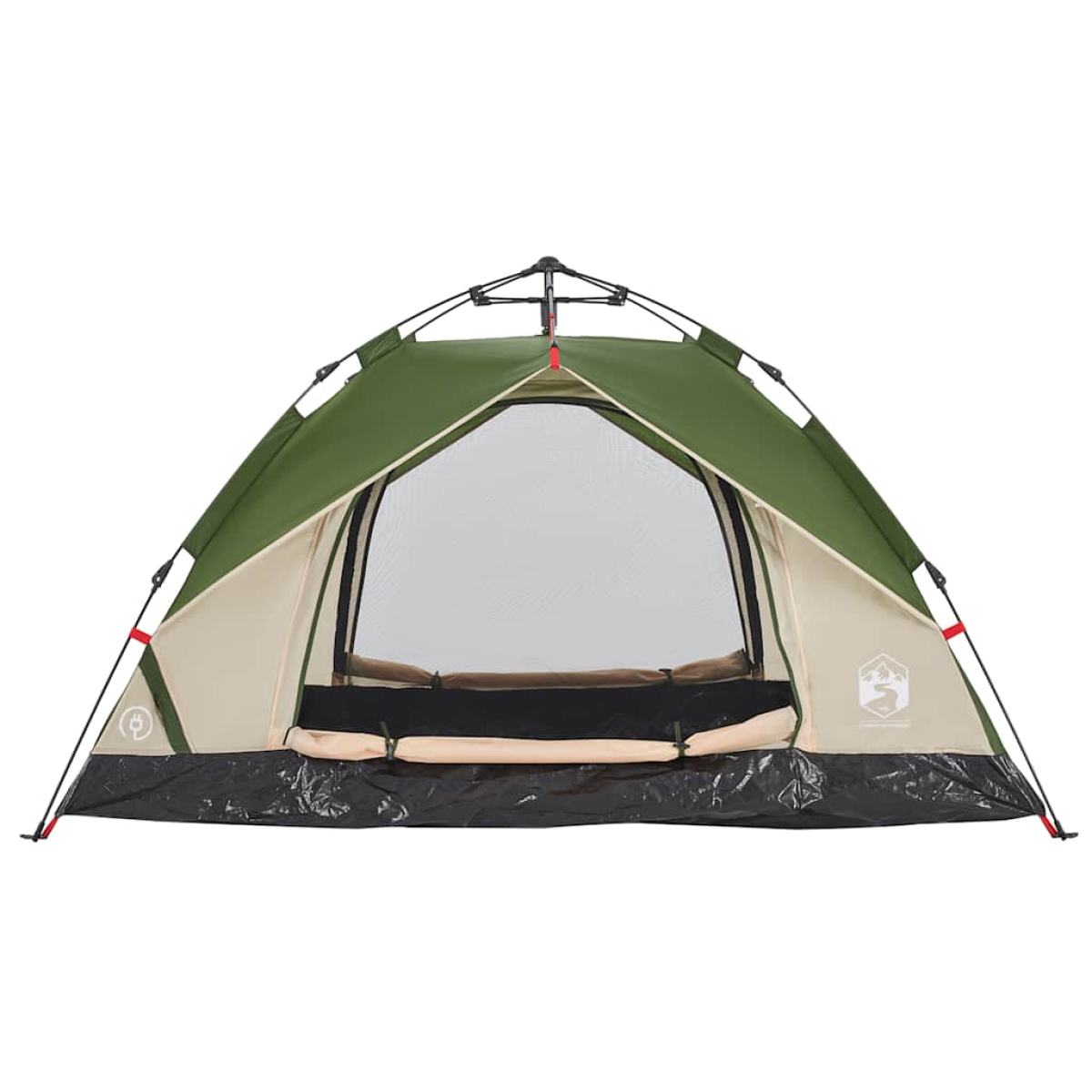 This family tent with a modern look protects you from the unpleasant weather and provides a comfortable place for anywhere adventures. All-round waterproof design: This camping tent, made from polyester with a PU coating, is waterproof and wind resistant. The taped seams effectively prevent rainwater infiltration, while the heavy-duty ground sheet helps maintain a dry and comfortable interior.Quick-release system: Set up the tent effortlessly with the quick-release system! Lay the tent down, extend the pre-assembled poles until they lock into place, and you're all set!Good ventilation & mosquito protection: The mesh walls not only offer excellent ventilation but also effectively keep insects at bay, ensuring a comfortable and bug-free experience for users.Convenient electrical cord access: The E-port allows you to easily connect an extension cord from an external power source to your tent.Lightweight and portable: The foldable and lightweight design allows you to easily pack the tent and store it in the included carry bag for easy transport. Warning:Keep all flame and heat sources away from this product fabric.
