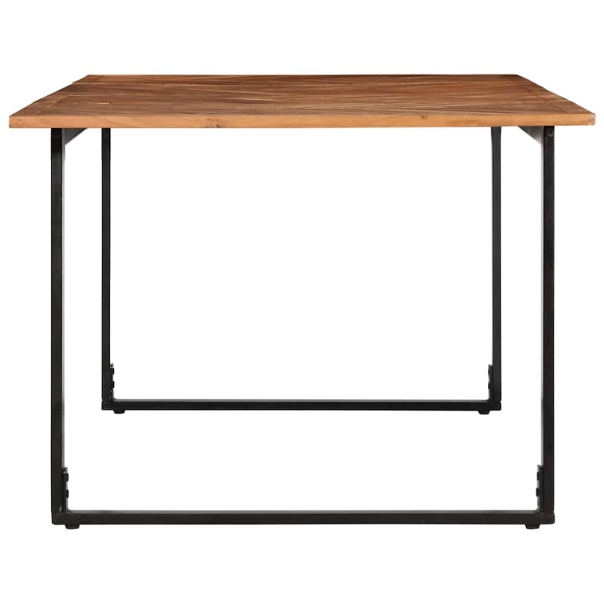 Enjoy perfect meal time with your family or friends on this wooden dining table every day! Robust and stable material: Solid acacia wood is known for its strength and durability. Its diverse colours and unique grain patterns give it an attractive appearance. With good stability and resistance to weathering, it is ideal for crafting indoor and outdoor furniture.Sturdy frame: The iron frame of the kitchen table adds an industrial style to your interior while ensuring sturdiness, stability, and longevity.Practical tabletop: The sturdy tabletop of the dining room table is perfect for placing meals, drinks, and other decorative items.With legs: Elevated legs make it easier to clean underneath the dinner table, maintaining a tidy appearance and ensuring better airflow around electronic equipment. Good to know:Each item is unique with variations in colours and grains. The delivery is random, ensuring the exclusivity and individuality of your product.