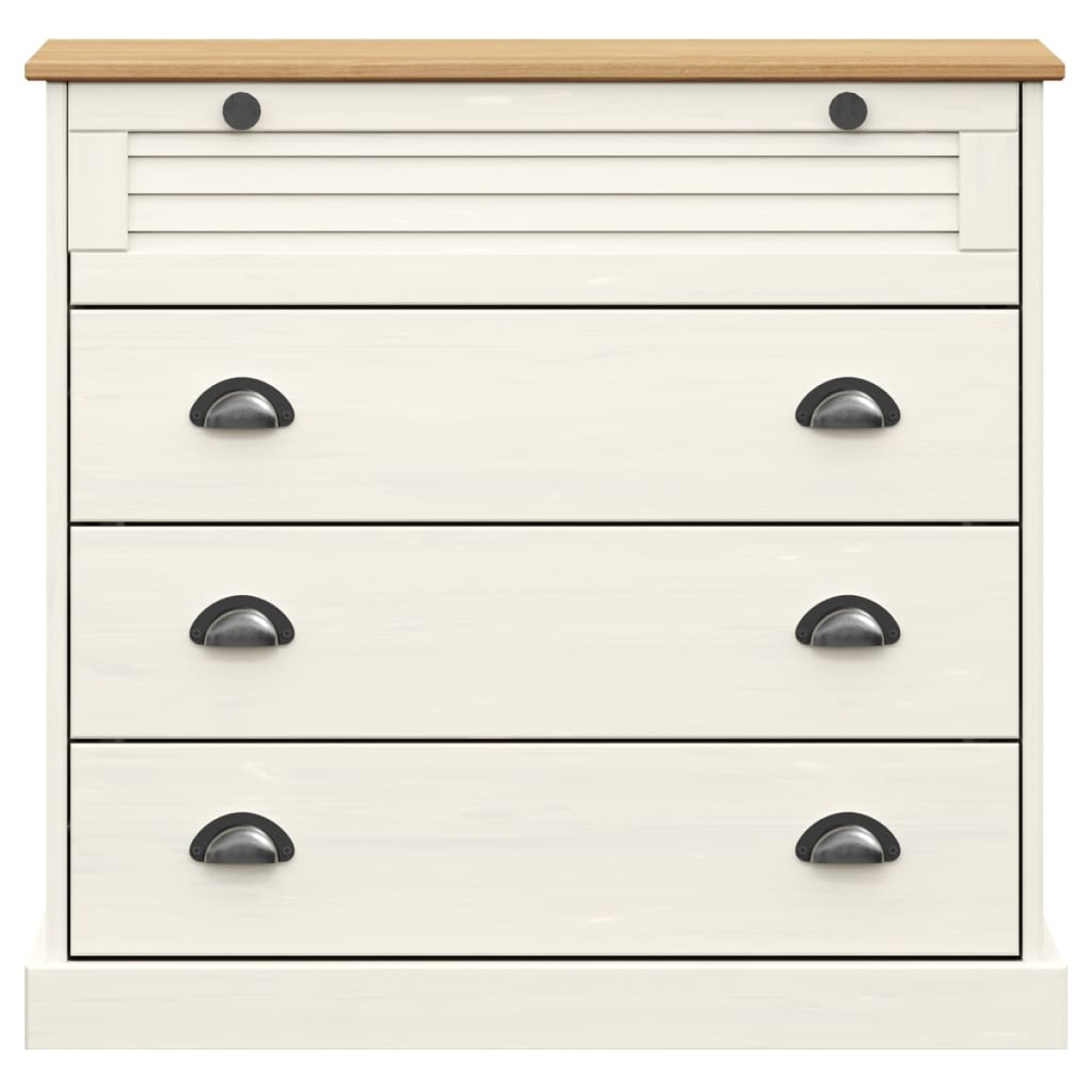 If you are short on space but need more storage, this compact and stylish chest of drawers is here to help! Solid pine wood: Solid pine wood is a beautiful natural material. Pine wood has a straight grain, and the knots give the material its signature, rustic look. Made of solid pine wood, the drawer chest is durable and sturdy.Spacious and functional storage: Featuring 4 drawers, the storage cabinet offers ample space for keeping your things organised. Additionally, it has multiple uses. The file cabinet can also be used as a dresser for the bedroom, a side cabinet for the living room or entryway.Easy to maintain: The sideboard cabinet is easy to clean with a damp cloth and requires less maintenance.Metal handles and knobs: The cabinet with drawers comes with metal handles and knobs that make it easy to open and close the cabinet, while adding to the extra beauty. Warning:To prevent it being overturned, this product must be used with the provided wall attachment device.