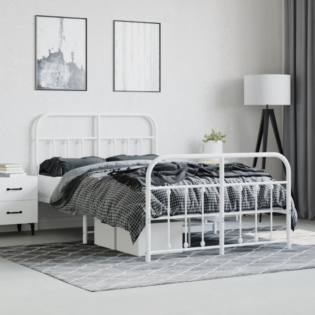 If you are looking for a robust bed frame for your bedroom, then this classic bed frame featuring an elegant and timeless design is the perfect choice for you! Robust metal construction: The bed frame is made from powder-coated steel. Steel is an exceptionally hard and strong material that offers exceptional sturdiness and stability.Metal slats and legs: The metal bed frame is complete with metal slats and centre legs to provide your mattress with much-needed support and breathability.Extra storage space: For your convenience, the guest bed also has an extra space underneath for keeping your storage boxes out of sight.Functional headboard and footboard: The headboard and footboard of the bed base keep your mattress in place. Also, the headboard provides you with excellent back support when you sit up in bed to read or watch TV. Good to know:A mattress is not included with this bed. We do offer a various selection of mattresses. You can check our shop for a matching mattress.
