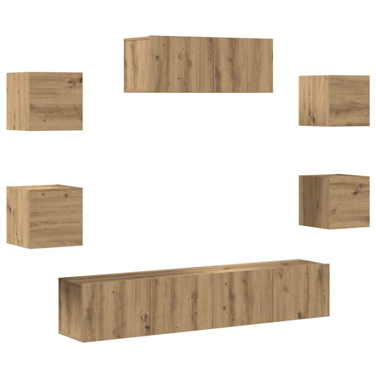This classic TV cabinet set is designed to be a focal point of your room, featuring a trendy yet practical design. Stable and durable material: Engineered wood is a durable and stable material with a smooth surface that is resistant to moisture, warping, and splitting, making it a reliable choice for a variety of projects.Ample storage space: This TV cabinet provides ample storage space for keeping your magazines, books, DVDs, and multimedia devices well-organised and within reach.Space saving: The media cabinet can be wall-mounted to add extra storage space. That way, you can maximise your floor space and keep the area clean.Stable and sturdy tabletop: The sturdy top is ideal for placing your TV and stereo systems or some decorative items like vases or potted plants.Easy to maintain: Thanks to its smooth surface, the vanity table is easy to clean with a damp cloth and requires less maintenance. Good to know:Screws and plugs for inside the wall are not included. We advise to find and use screws and plugs suitable specifically for your walls. If you're not sure, you can consult with a professional. Please read and follow each step of the instructions.