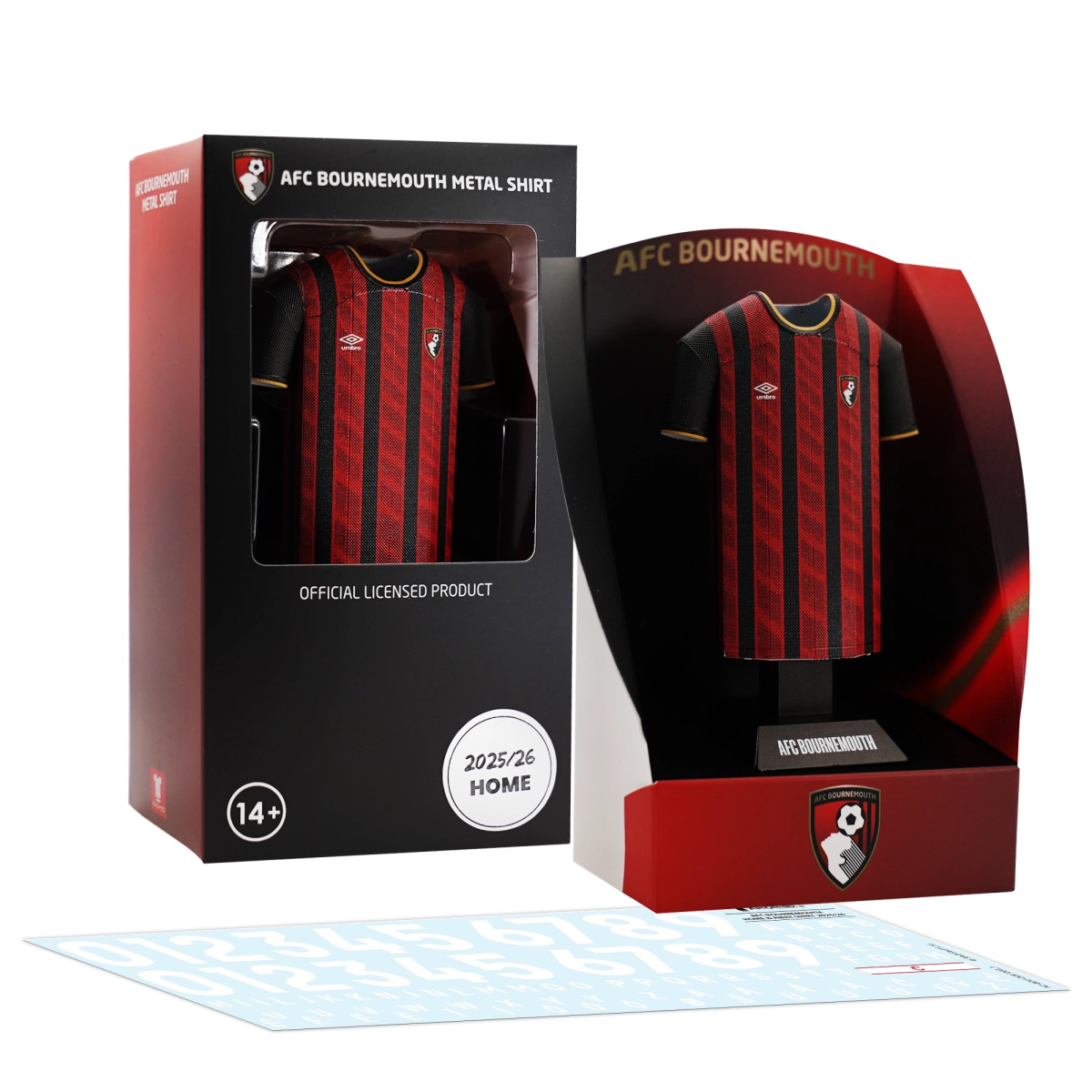 Show your Cherries pride and support in perfect fashion with our official Alloy Shirt – an exclusive, officially licensed metal replica jersey honoring the AFC Bournemouth 25/26 Home Kit. Designed for collectors and true fans, this premium model captures the heart and energy of Dean Court in every detail.