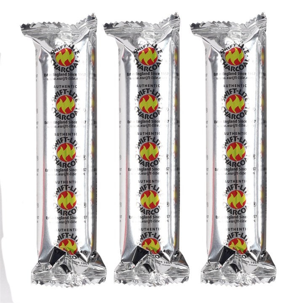 Box of 80 Excelsior swift lite charcoal discs. The box contains 8 individually wrapped packs of 10 discs. The charcoal tablets are commonly used for burning resins, powdered herbal blends and loose incense. The disc should be placed in a fireproof bowl before lighting (our mini cast iron cauldrons are ideal for this), let the charcoal disc heat up - much like as you would with a BBQ, before sprinkling incense, resin or fragranced powder over it. Product Dimensions: H1cm x W3cm x D3cm Packaged Dimensions: H7cm x W13.5cm x D14cm