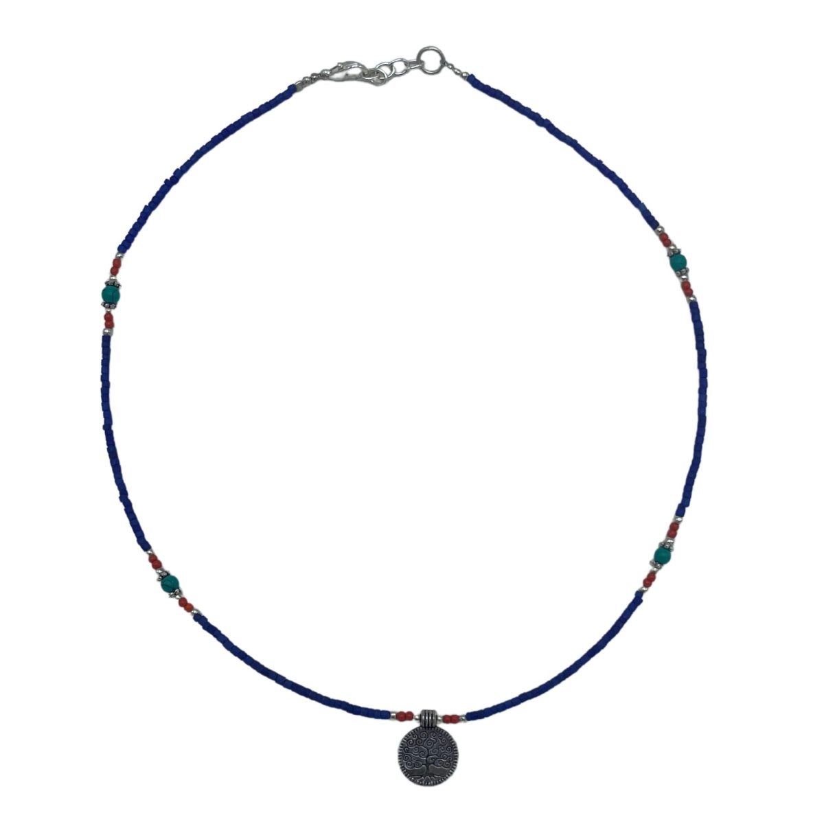 Nepalese Extra Fine Gem Necklace - Blue Onyx & Tree of Life