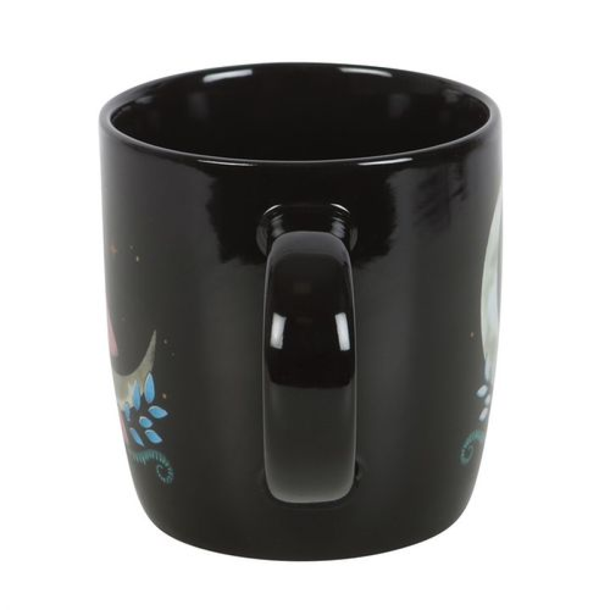 Add a touch of enchantment to your morning cuppa with this dark forest moon ceramic mug. This black ceramic mug features a captivating and intricate forest moon design, including a toadstool, stars and flora and fauna. 340ml capacity, dishwasher and microwave safe.