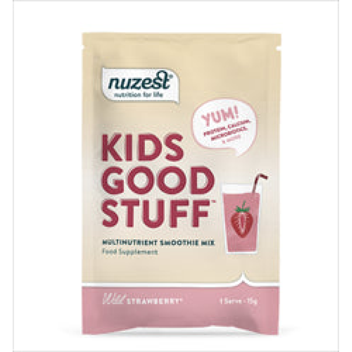 Parents asked, we answered. Kids Good Stuff is the one-and-done nutritional support that growing bodies need. Made from a base of fruits and vegetables, our child-friendly blend is fortified with pea protein, probiotics, calcium and 20+ other vitamins and minerals to support immunity, digestion, concentration and growth. Kickstart your kids' nutrition. It's for life.
