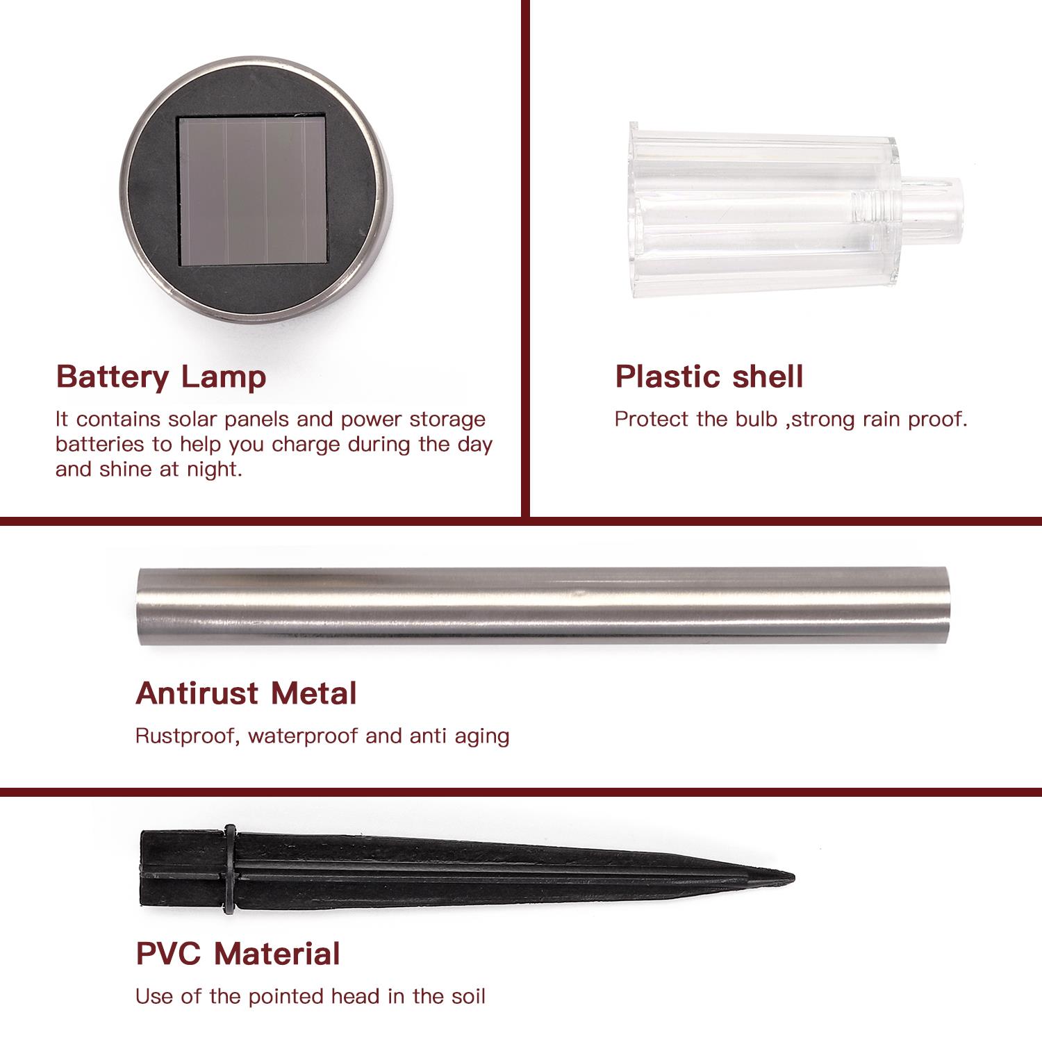 • Recharged by solar panels under sunlight; Long-life rechargeable batteries included (1 x AAA/R03 NiMH 300 mAh per stick light)