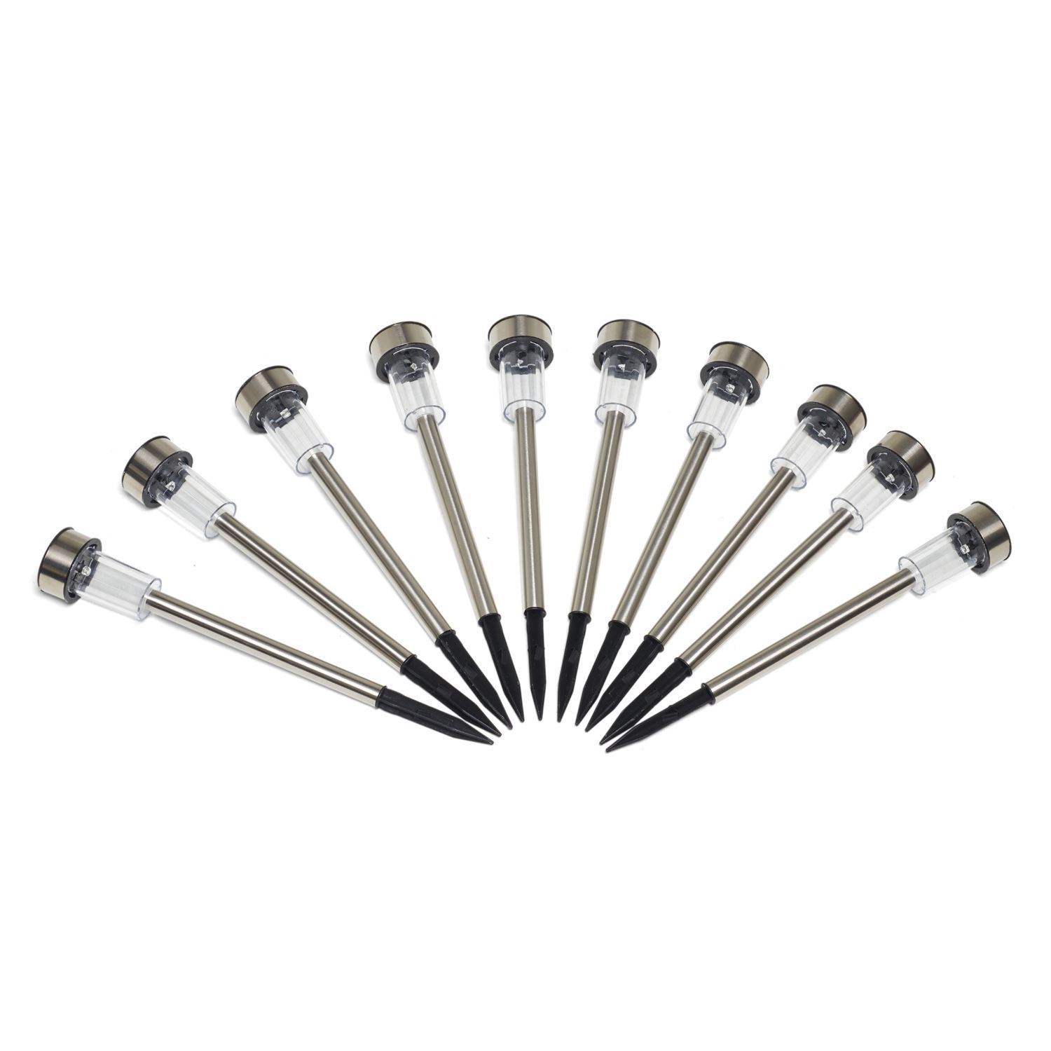 Vinsani 10 X Colour Change Stainless Steel Solar Powered Stick Post LED Lights Rechargeable Outdoor Garden Border Patio Path Driveway Entrance Marking Water Resistant Lamps