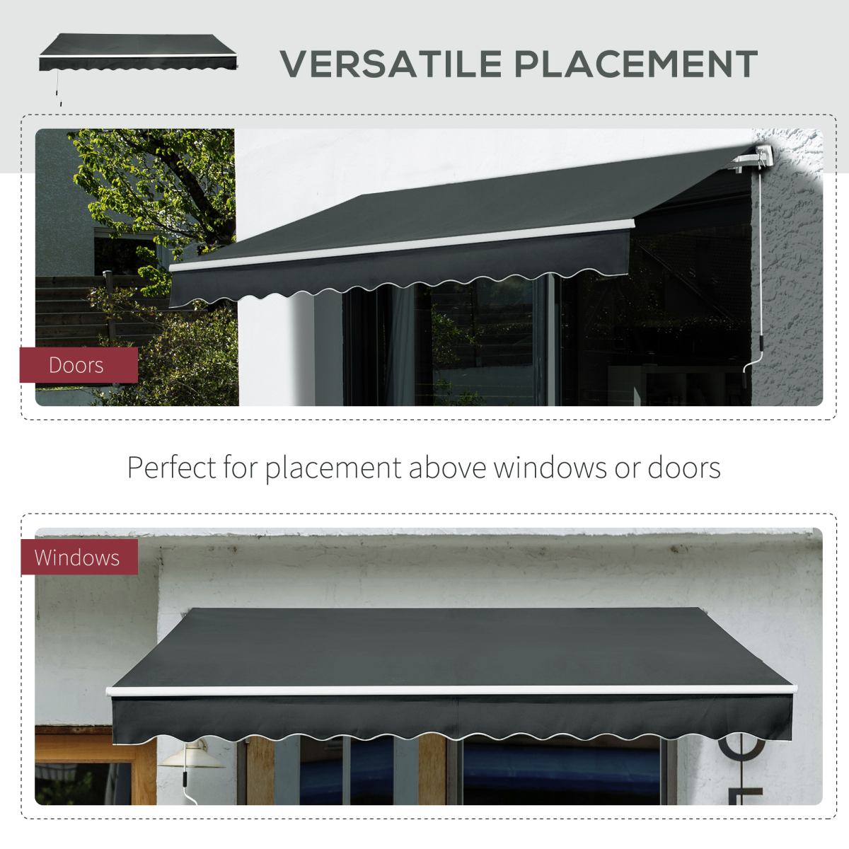 With a thick sun-shielding canopy fixed on an aluminium frame, this 3.5 x 2.5m awning from Outsunny will give you all the shade you need this season. The manual design means you can set it up wherever needed - whether it's above a door or window, and it easily mounts onto your chosen surface with all accessories included in the package. Finished with a crank handle for easy operation. It's time to enjoy the beauty of the Summer more than ever before.