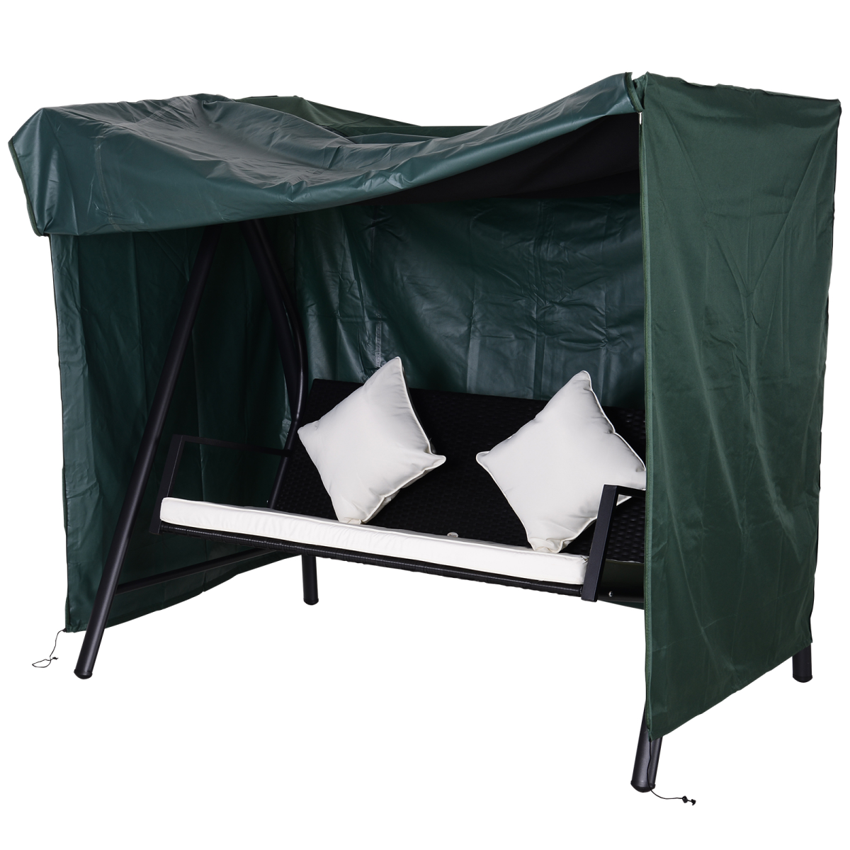 Protect your outdoor swing chairs in all weather conditions with this cover from Outsunny. Made from high quality, heavy duty Oxford fabric, it has tightly stitched seams to stop any moisture or water from seeping in. It has PVC painting to stop UV rays fading the furniture in the summer, and it features a secure drawstring and buckle to keep the cover on in the wind. Easy to slip on off, it will keep your swing chairs in top condition for many years to come.