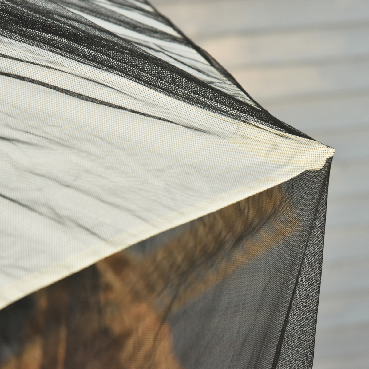 2.3m Umbrella/Table Mosquito Net-Black" Description: - This Outsunny screen is a great addition to anyone who has a patio umbrella. It is a great way to create a screen and keep unwanted bugs out. - Made of oxford cloth meshing. - Comes with a zipped door for easy entrance and exit. - The mesh cover can fit most umbrellas with a clinch top. - The bottom tube can be filled with water to make it stable. - Ideal for keeping pests away. - Easy to assemble, transport, and store. Features: - Fit over most umbrellas with the clinch top and adjustable closure. - Ideal for mosquito, flies, or other insect invasion. - Keep the screen in place with the water-filled tube. - Easy access with the handy zippered entrance. - See-through mesh.