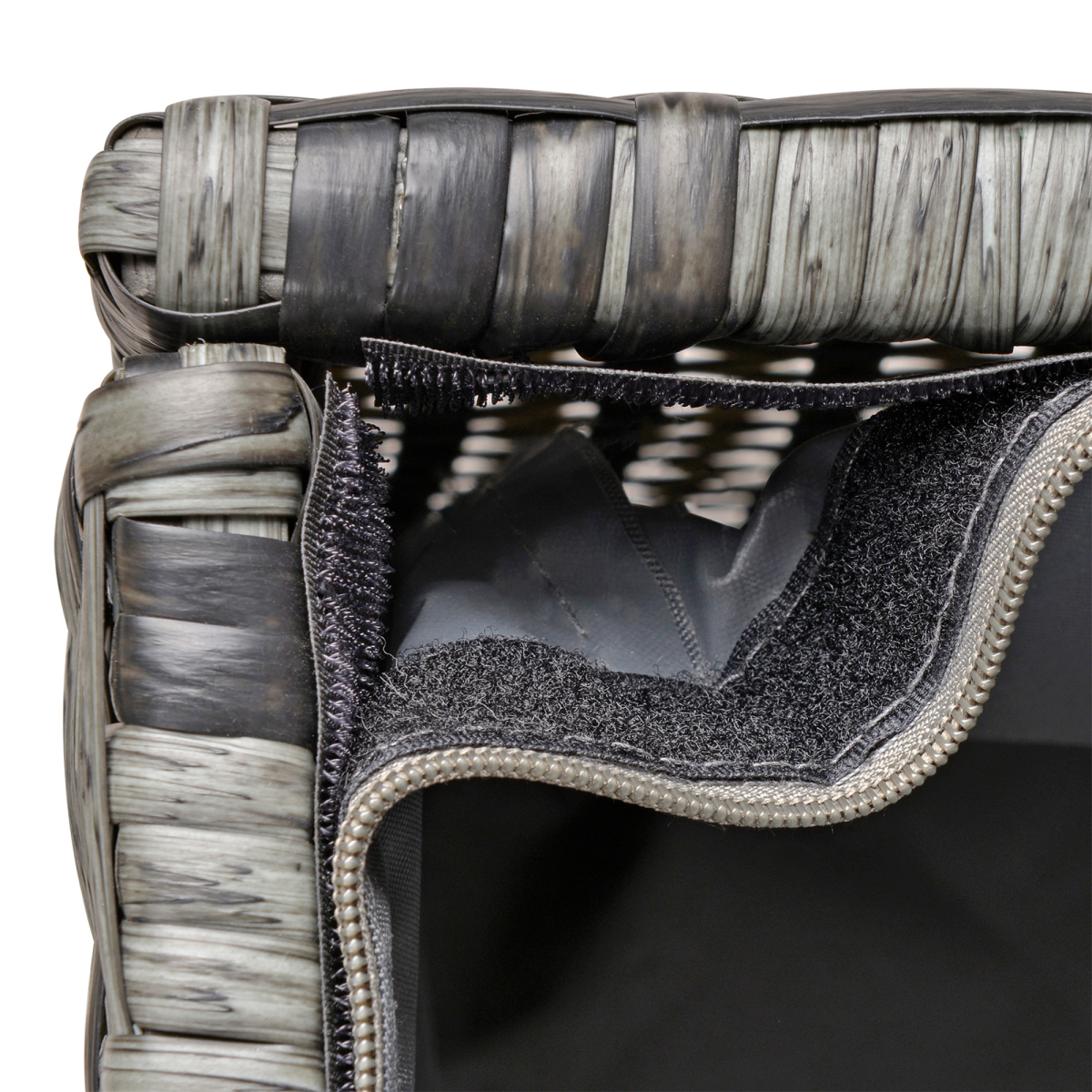 • Tough aluminium frame, wrapped in wood-effect PE wicker