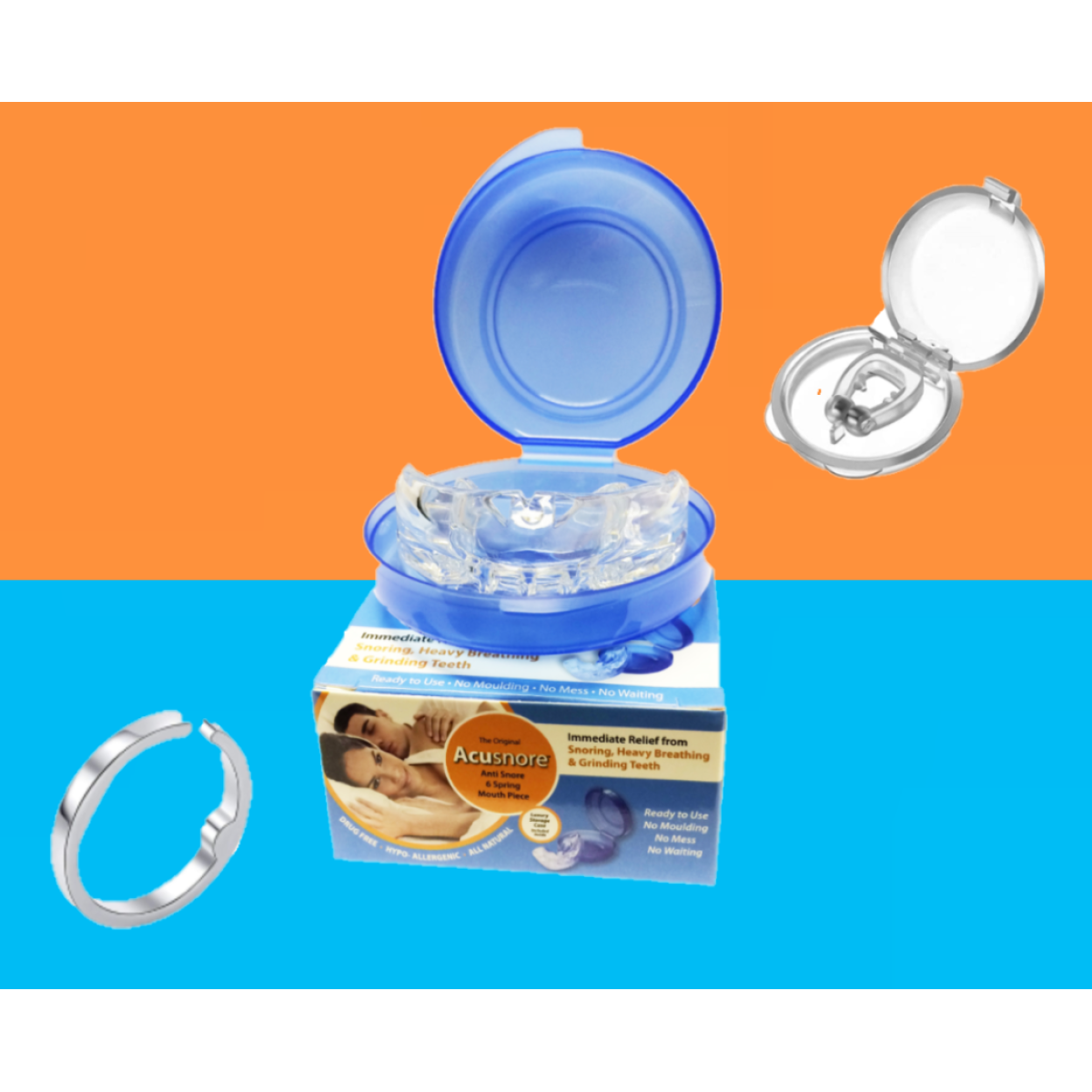 ? 1 x Acusnore 6-Spring Mouth Guard Gently advances the jaw to keep airways open, preventing snoring and teeth grinding.