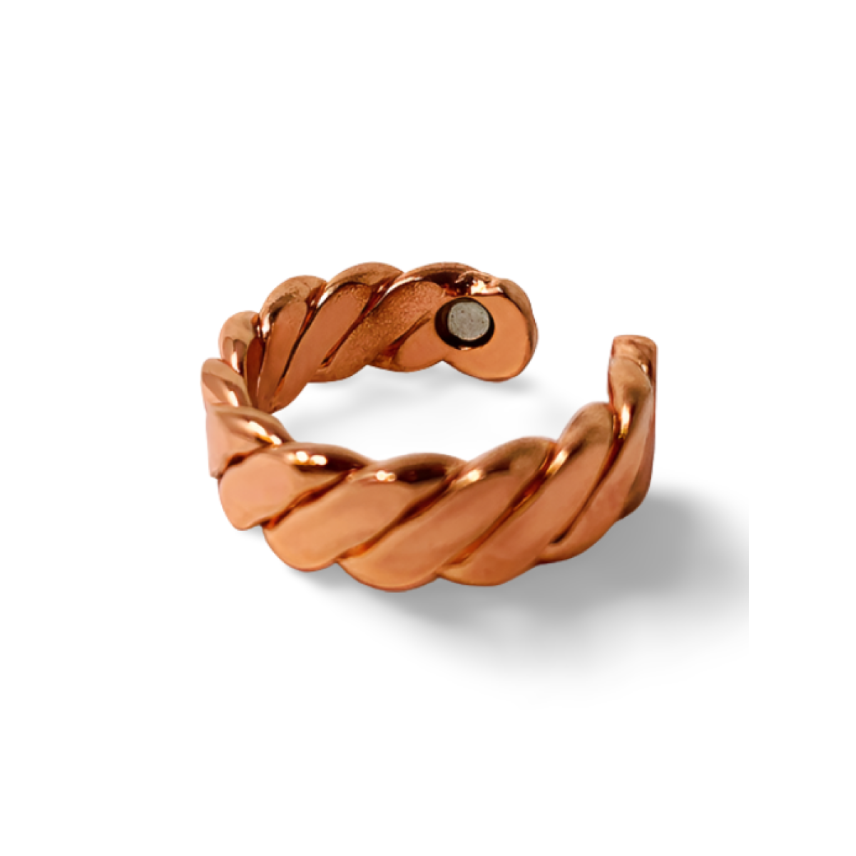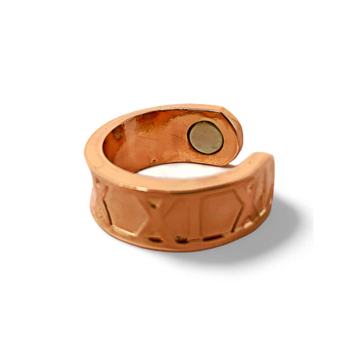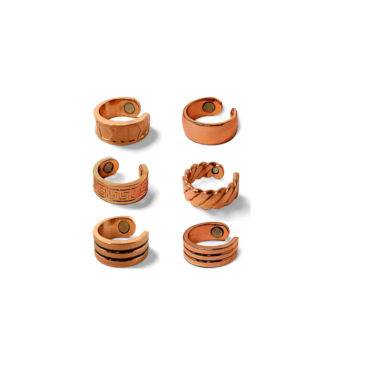 Our adjustable copper rings are perfect for men, women and teenagers. Each one can be adjusted for a tighter or looser fit. The attractively brushed copper design is presented in a beautiful Acusoothe velvet pouch for safe keeping. The 2500 gauss per magnet, positioned near the finger joint & tendons, are excellent for the maximum therapeutic effect. The brackets are 99.9% pure copper combined with high strength magnets. It is claimed to offer some of the best therapy for arthritis pain & other finger related problems.