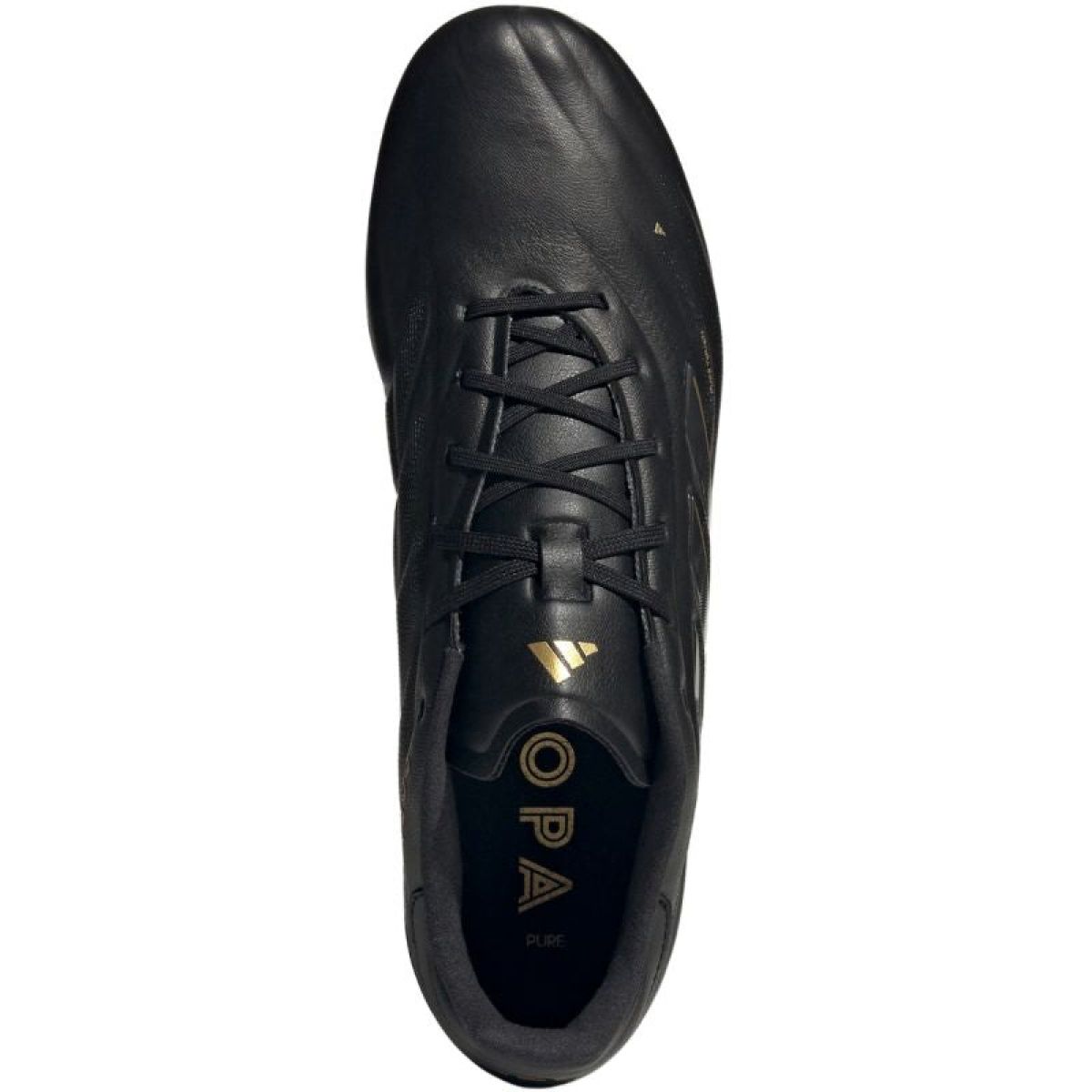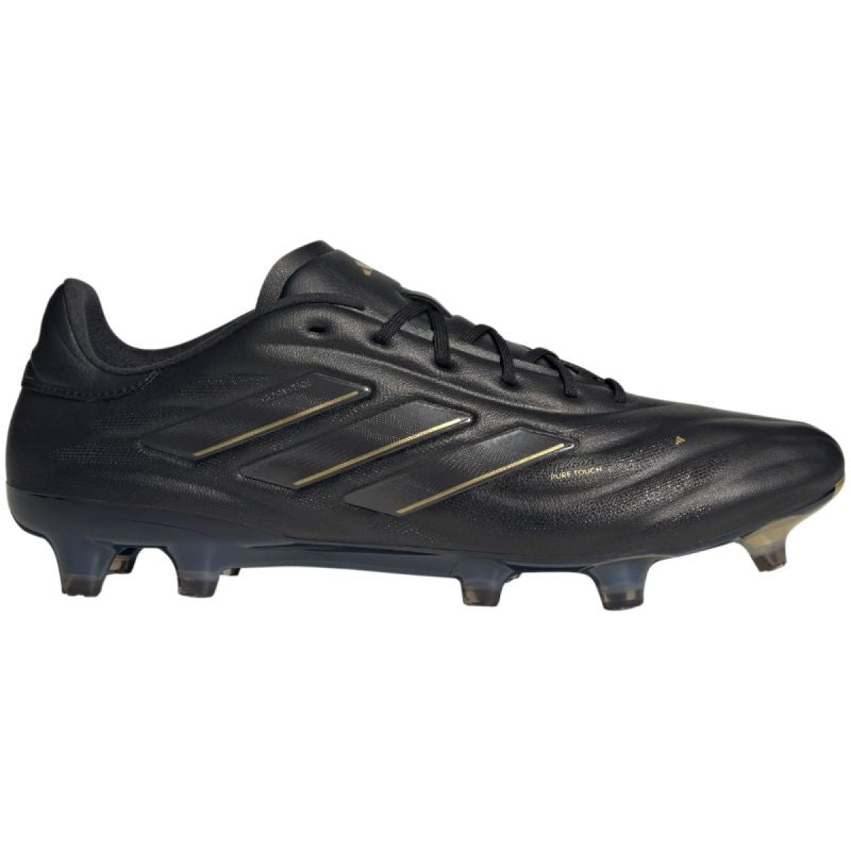 Football boots adidas Copa Pure 2 Elite FG IG6404 Professional men's football boots adidas will prove themselves during matches played on a natural, hard surface. The design of the boots is based on the technologically advanced Fusionskin upper with a leather forefoot. Lacing stabilizes the whole. Convex, wavy lines throughout the silhouette of the boot. The molded inner sockliner cushions the main pressure points in the outsole. Sole with a refined stud construction. Shoes from the adidas Darkspark Pack collection. The upper sewn from a series of recycled materials contains at least 20% recycled materials. This product is one of the solutions that will help put an end to plastic waste. Technical data: Fusionskin - improved upper with a leather forefoot Textile lining Moulded sockliner