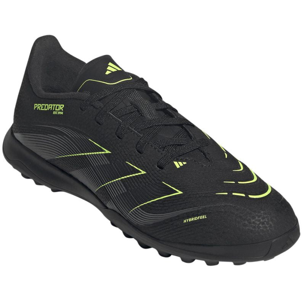 Discover the difference between desire and confidence in the adidas Predator boots, built for scoring goals. These juniors' League football boots feature a Hybridfeel upper with an allover 3D texture and Strikescale grippy inserts to help you control the ball when striking. The rubber outsole with studs provides stability on artificial turf pitches.
