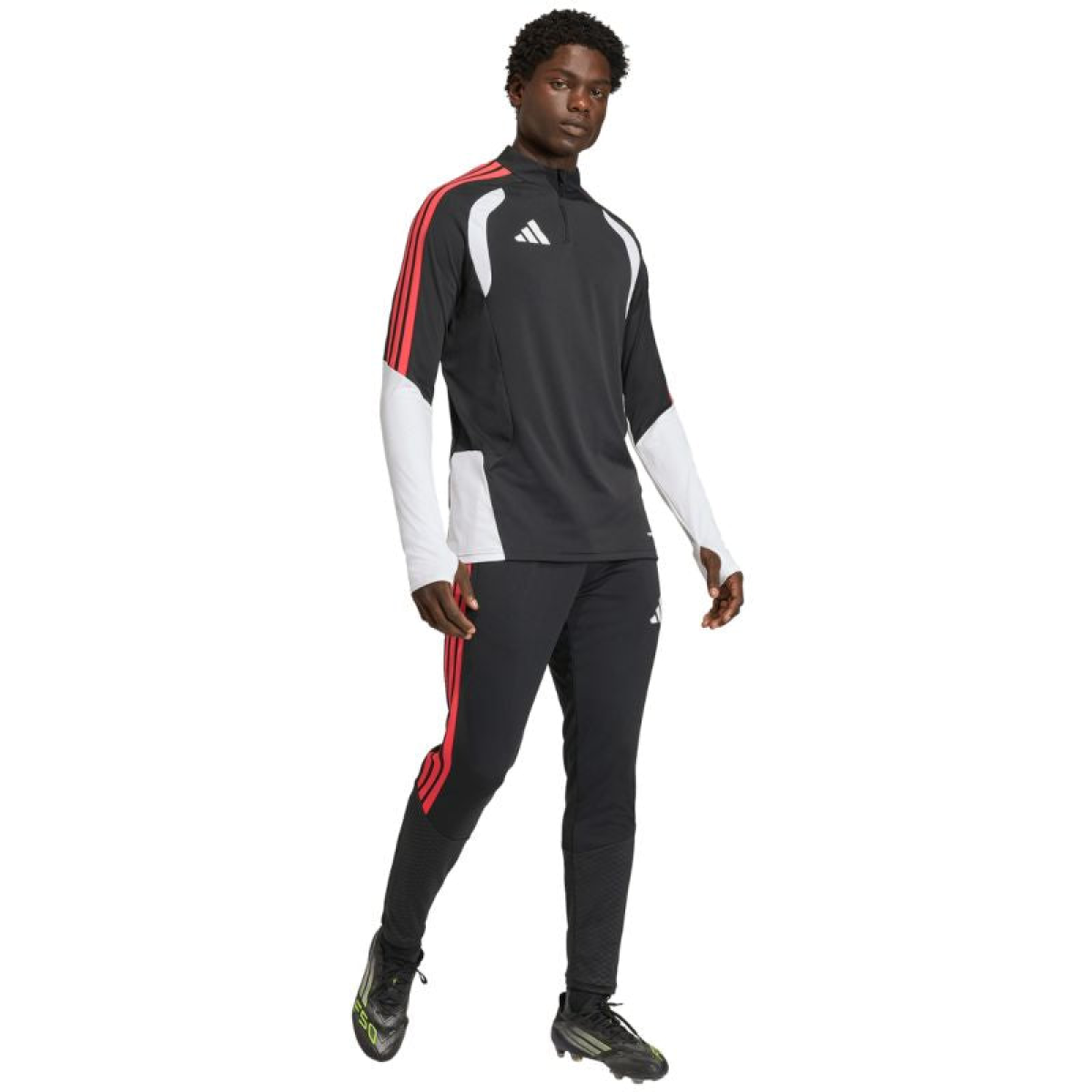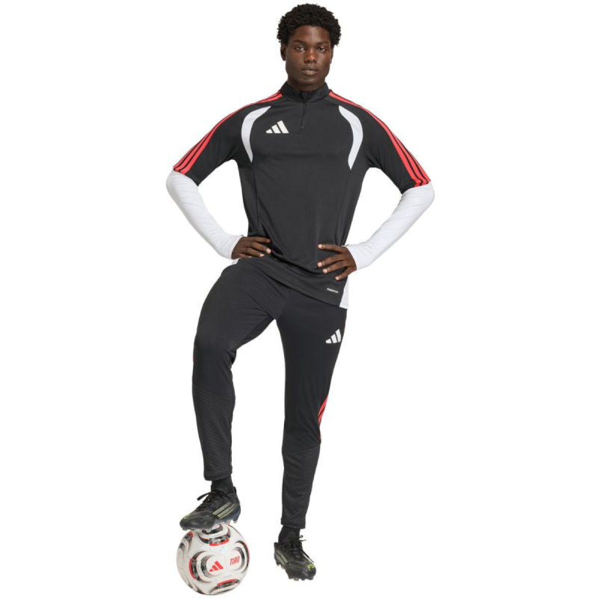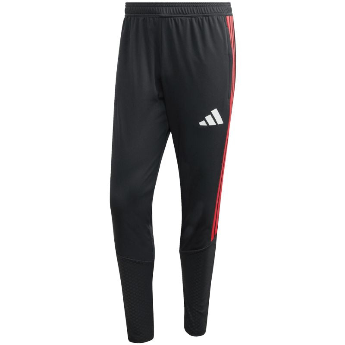adidas Tiro 26 Competition Men's Pants Black and Red KA5122. These adidas men's pants from the Tiro football collection are perfect for training. Quick-drying knit fabric. Formotion technology naturally adapts to your every move. They feature a slim fit with an elastic waistband and a drawstring for adjustability. Zippered side pockets. Zippered leg openings. Material: 100% recycled polyester.