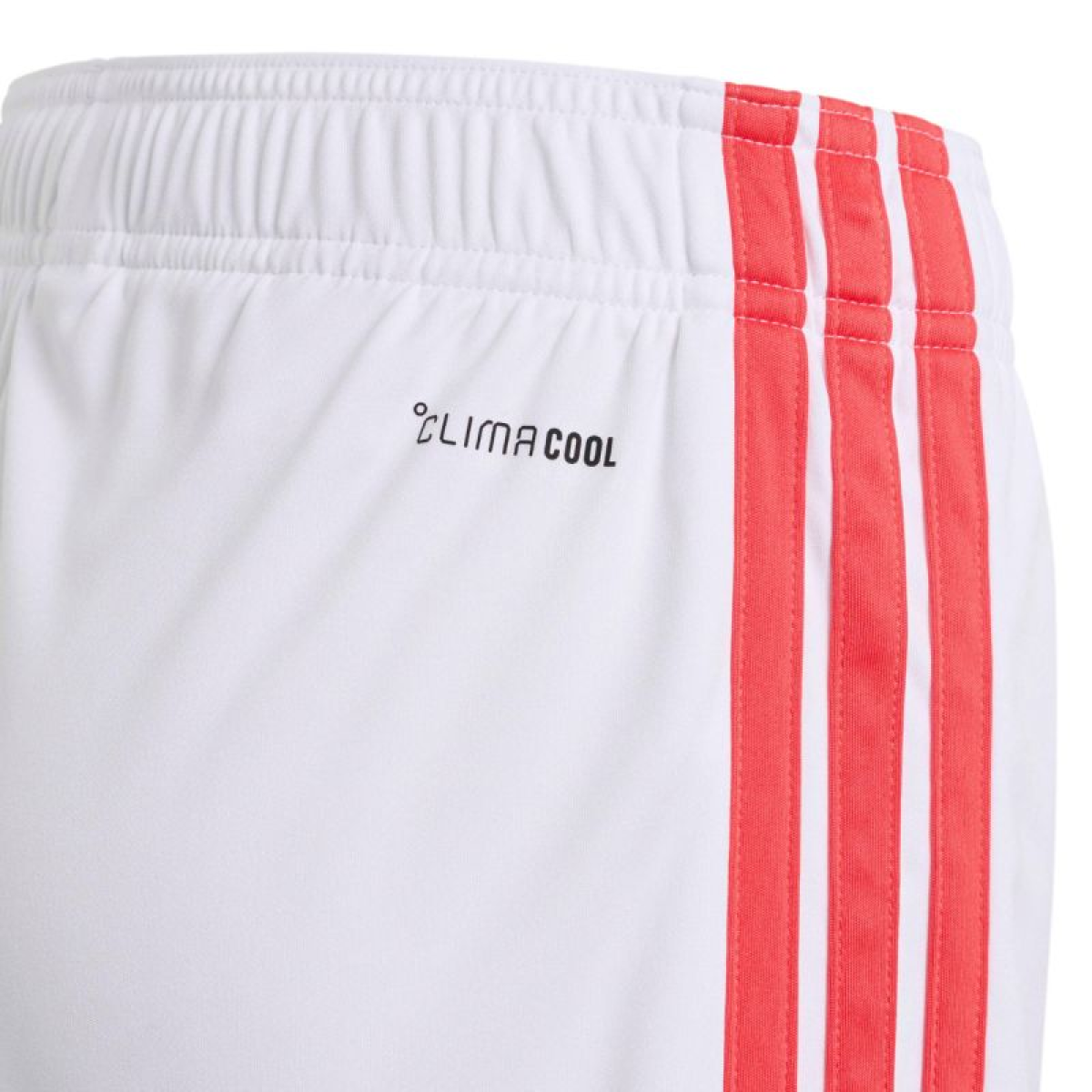 adidas Tiro 26 League Kids' Shorts, White and Red KR0364. These adidas kids' shorts are perfect for crucial matches. Part of the Tiro line, they feature an elastic waistband with an internal drawcord. Climacool technology. Side stripes. Small embroidered logo. Material: 100% recycled polyester.