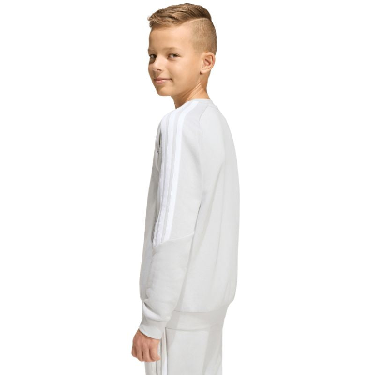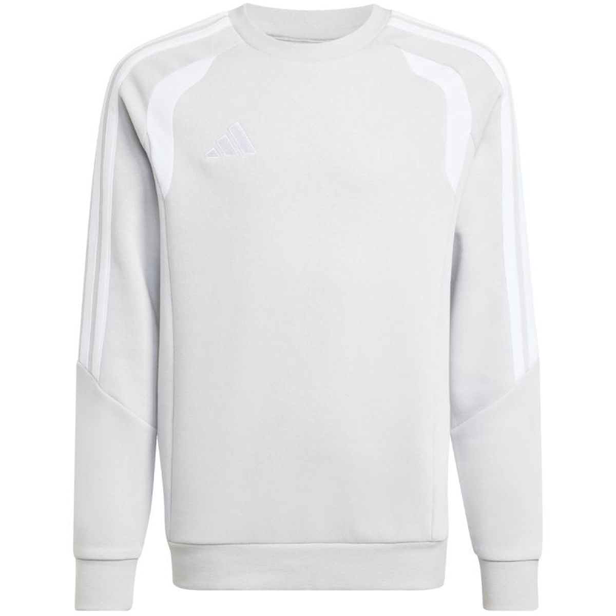 adidas Tiro 26 League Sweat Crew Gray KF5823 Kids' Sweatshirt. This adidas sweatshirt is perfect for everyday wear, regardless of the season. It features a regular fit. Made from a blend of cotton and recycled polyester. It features soft insulation. Ribbed cuffs and hem help keep the sweatshirt in place. Material: 70% cotton, 30% recycled polyester.
