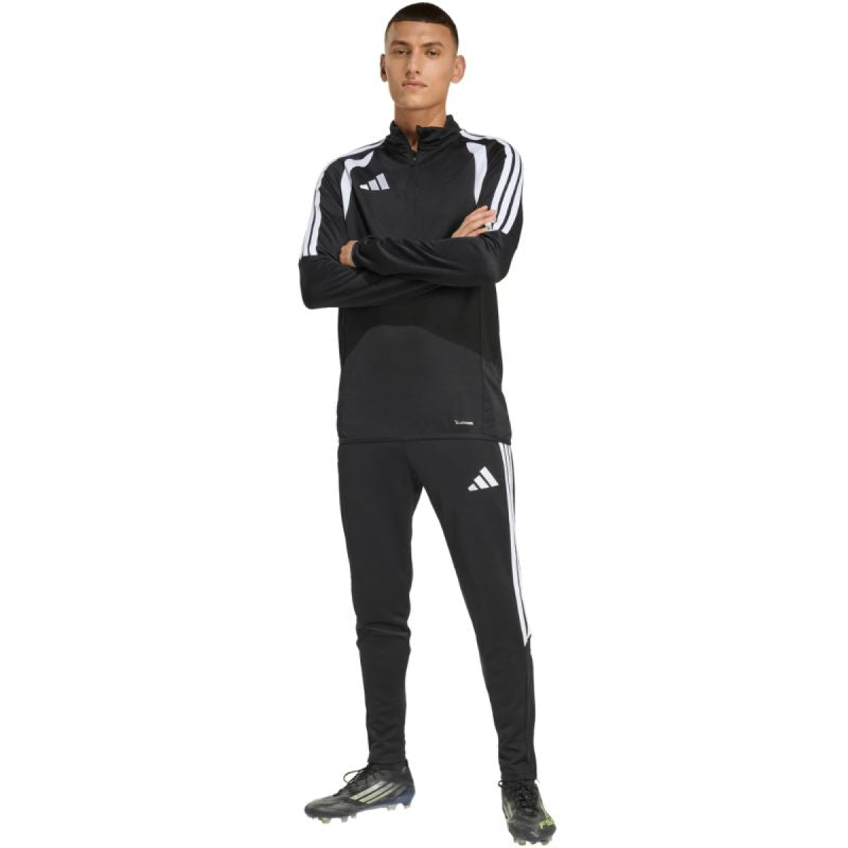 adidas Tiro 26 League Training Slim Pants, Black JY7113. These adidas men's pants from the Tiro football collection are perfect for training. Quick-drying fabric. Climacool technology wicks and disperses sweat, keeping you cool and dry. Slim fit. Mid-rise, elastic waistband with a drawstring. Side pockets with zippers. Zippered leg openings. Material: 100% recycled polyester