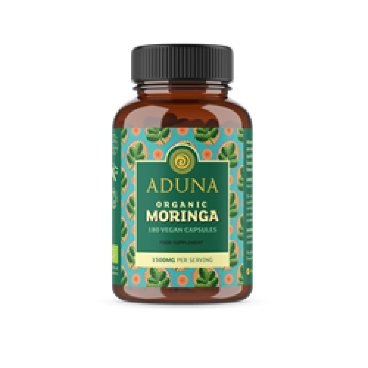 Discover Aduna Moringa Capsules. Aduna Moringa Powder is made from naturally-dried moringa leaves and is a rich source of plant protein (25%), fibre (24%) and is a source of 5 essential vitamins and minerals including iron, calcium and vitamins A, E and K. Aduna Moringa Capsules are made using the same best-selling powder for an easy and convenient way to enjoy the benefits of moringa on-the-go.