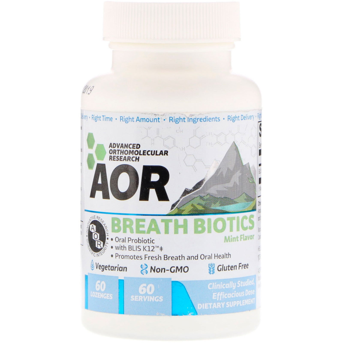 Innovative Research AOR - Advanced Series Scientific Integrity Oral Probiotic With Blis K12 Promotes Fresh Breath and Oral Health Vegetarian Non-GMO Gluten Free 60 Servings Clinically Studied, Efficacious Dose Dietary Supplement Right Amount | Right Ingredients | Right Delivery | Right Time GMP Manufacturing Independent Testing Quality Assured Discussion: Breath Biotics is Streptococcus salivarius K12, an oral probiotic which helps promote fresh breath and oral health.