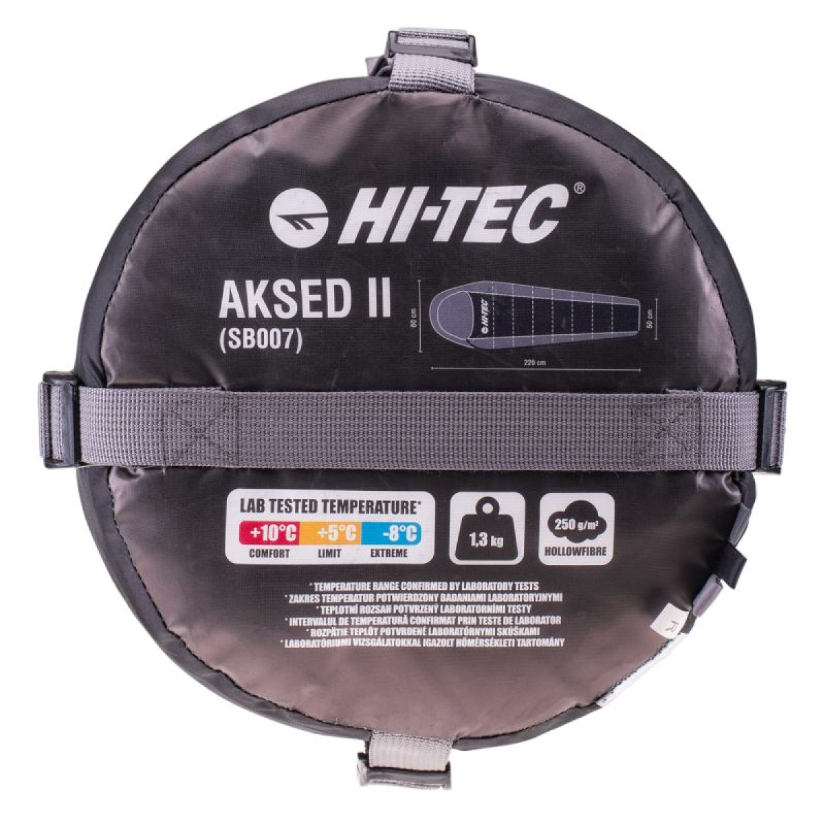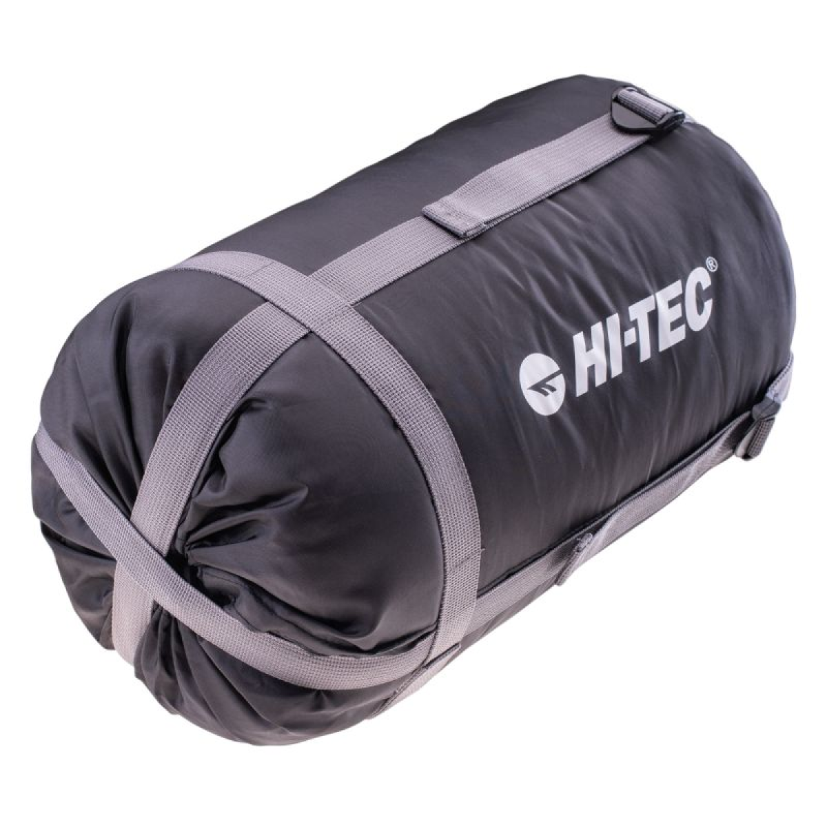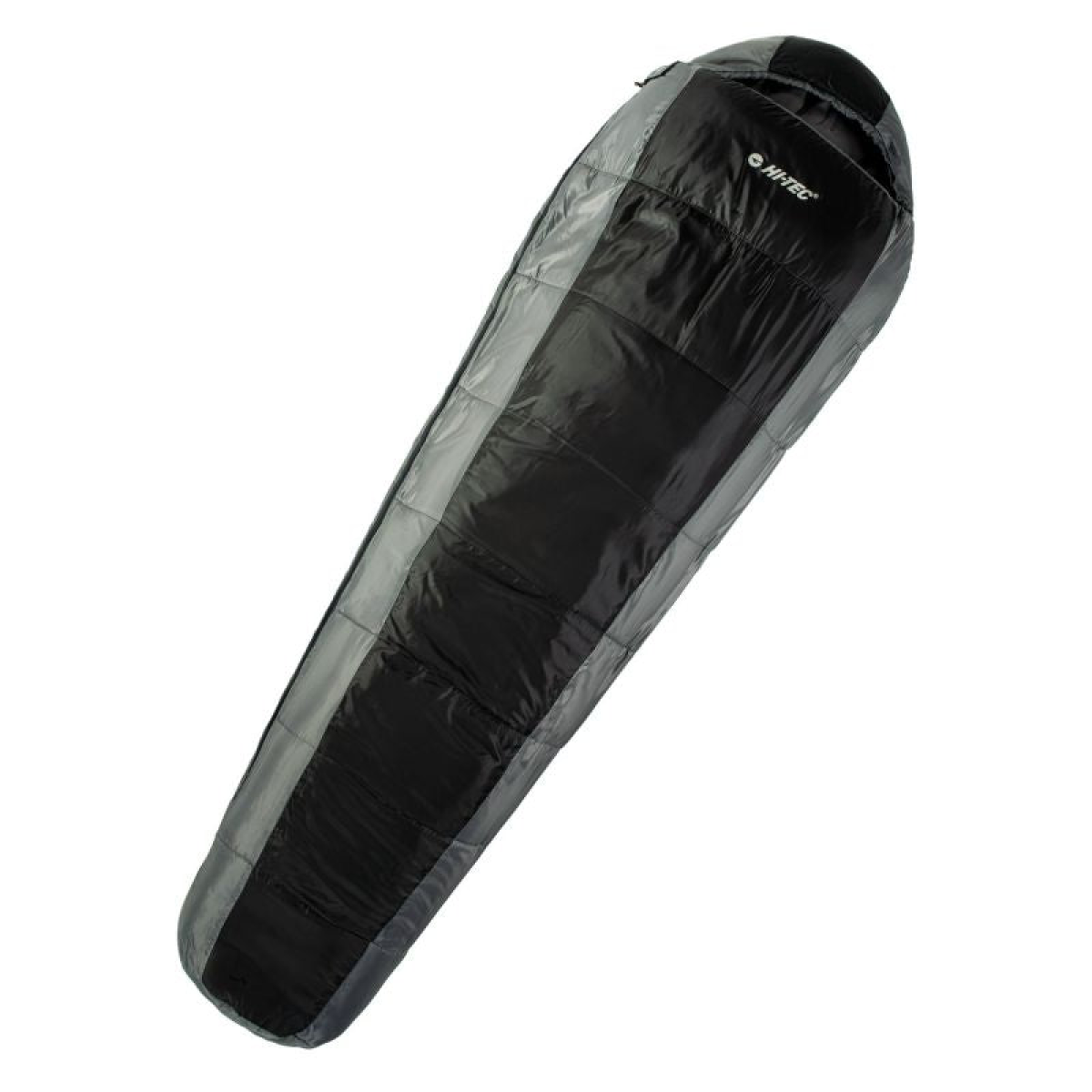 MUMMY SLEEPING BAG SIZE: 220 x 80 cm AFTER PACKING: 38 x 21 cm WEIGHT: 1.3 kg TEMPERATURE RANGE: COMFORT: + 10°C LIMIT: + 5°C MINIMUM: - 8°C MATERIAL COMPOSITION: OUTER MATERIAL: 100% POLYESTER LINING: 90% POLYESTER, 10% COTTON FILLING: 100% POLYESTER, 250 g/m131