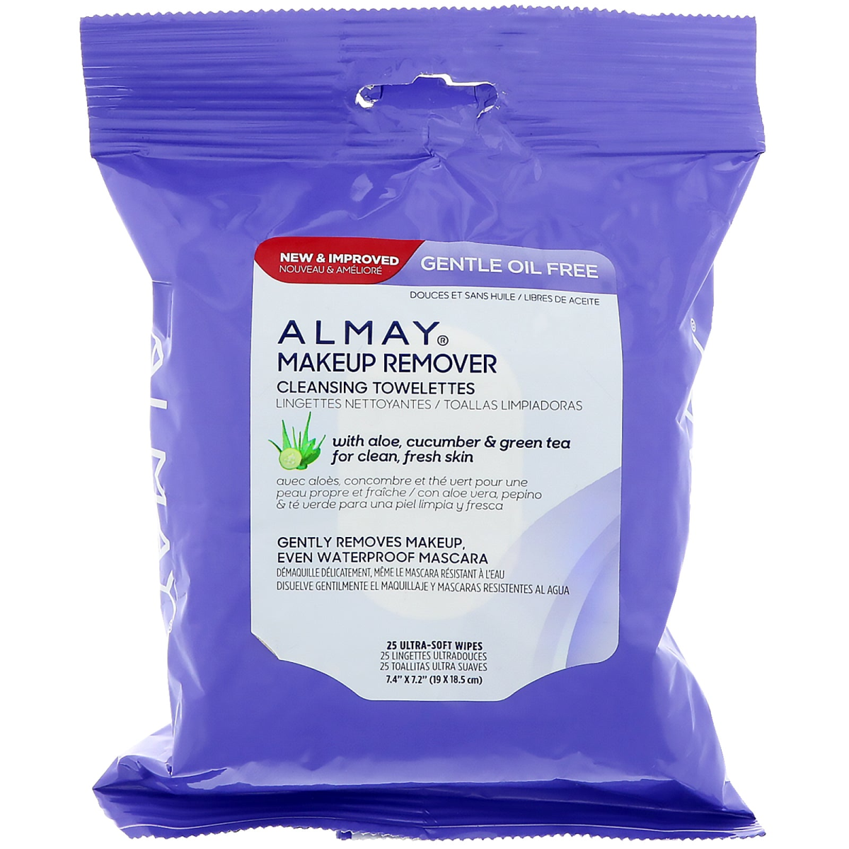 Almay, Gentle Oil Free Makeup Remover Cleansing Towelettes, 25 Ultra Soft-Wipes
