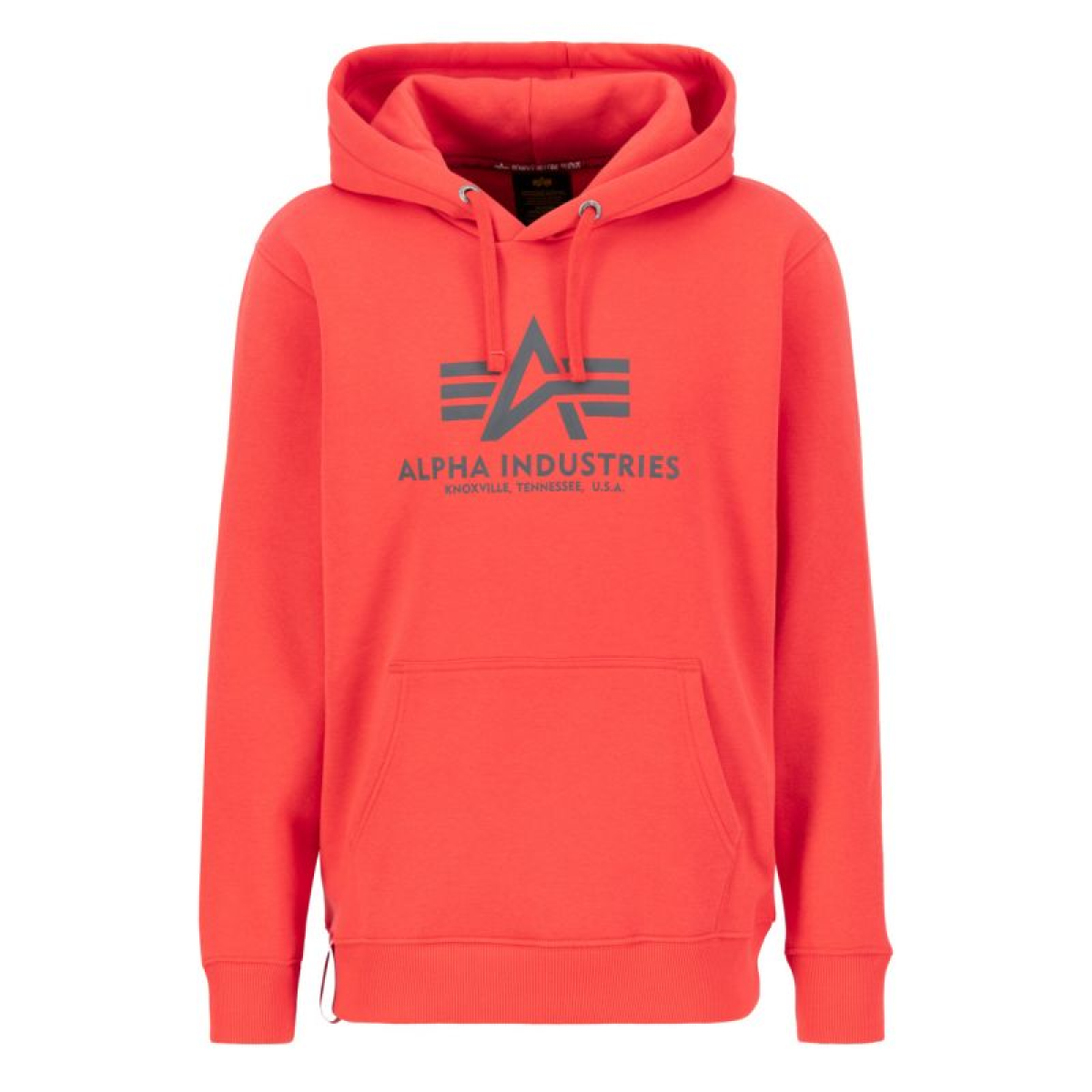 Alpha Industries Basic Hoody Men's Sweatshirt with Adjustable Kangaroo Hood, Red (178312-711)