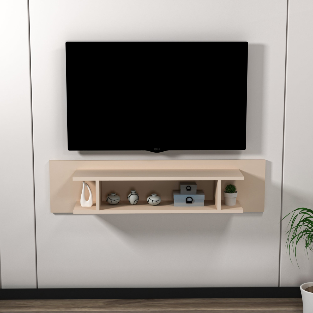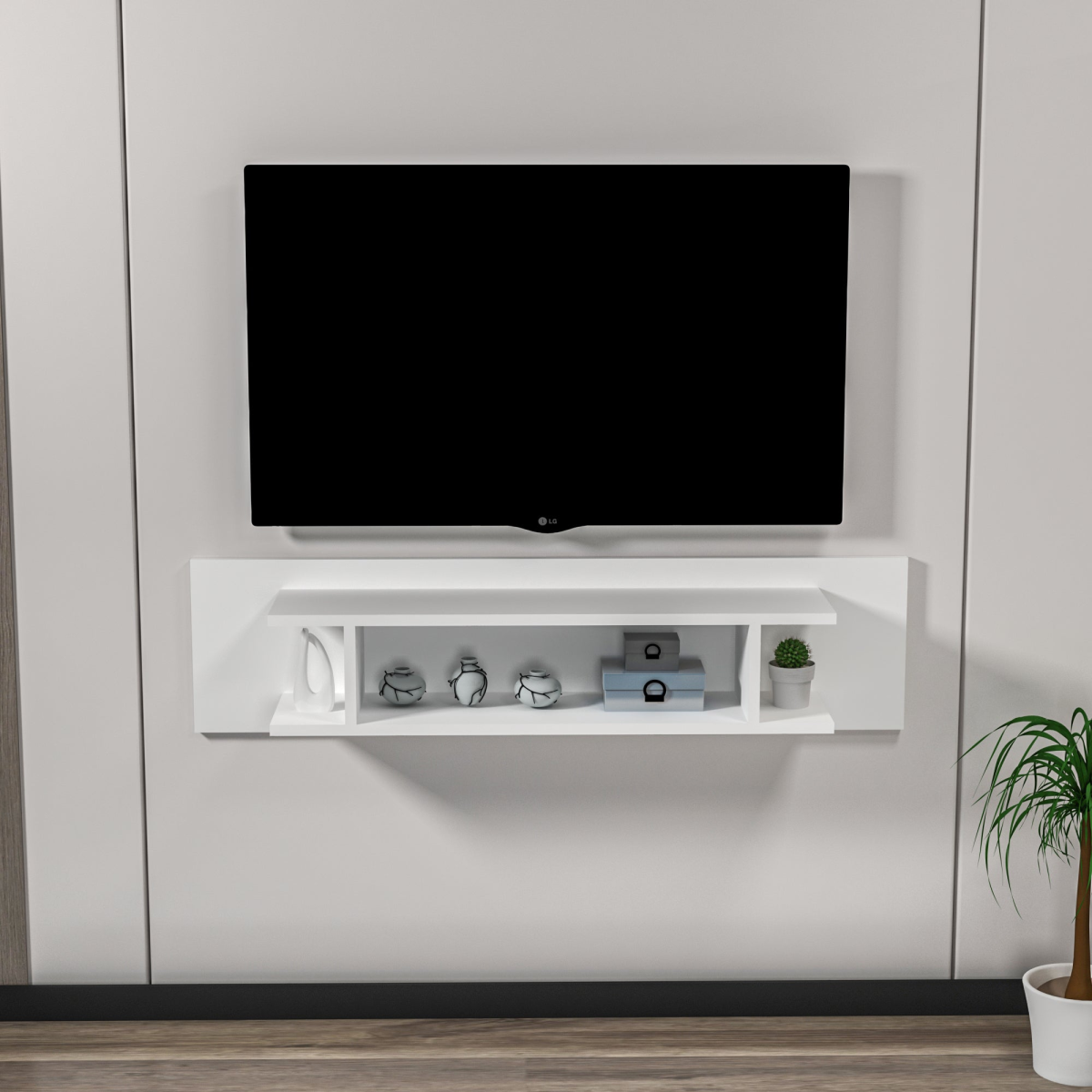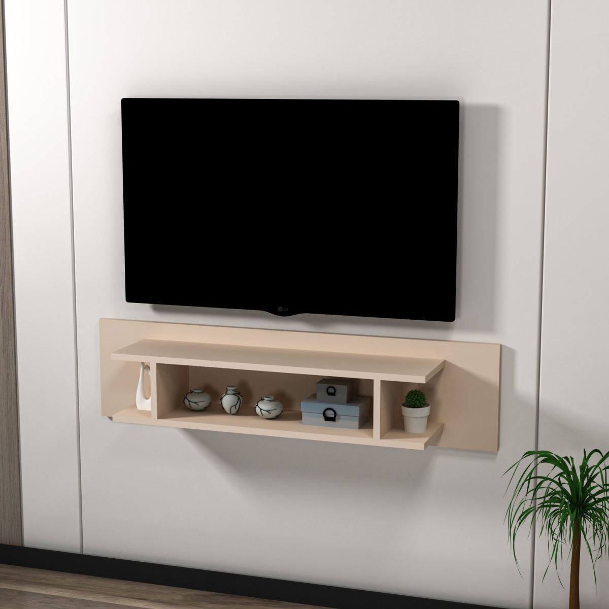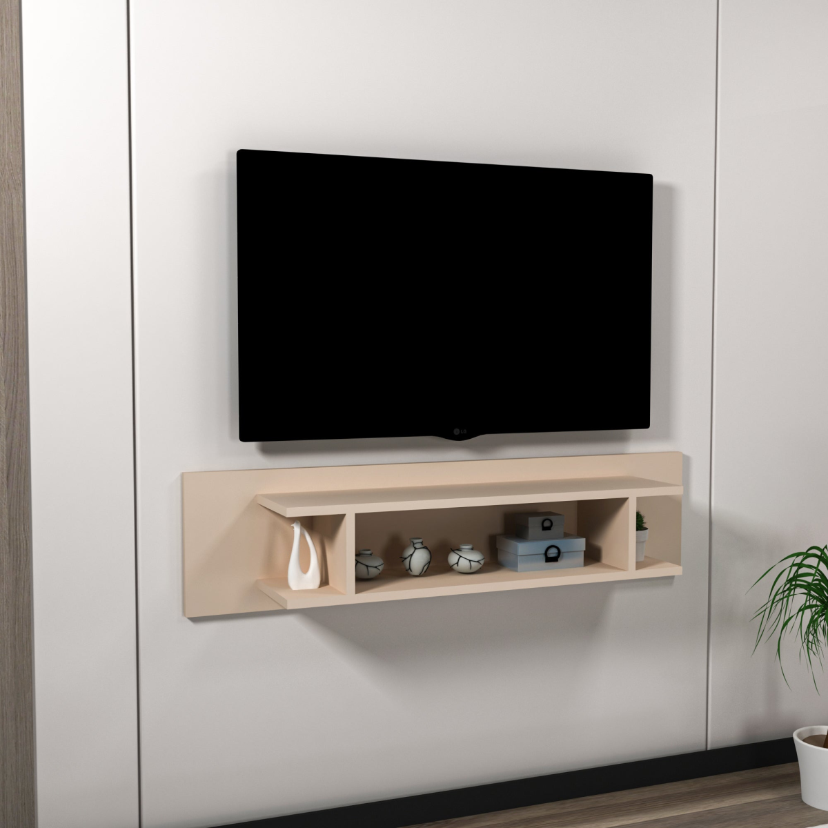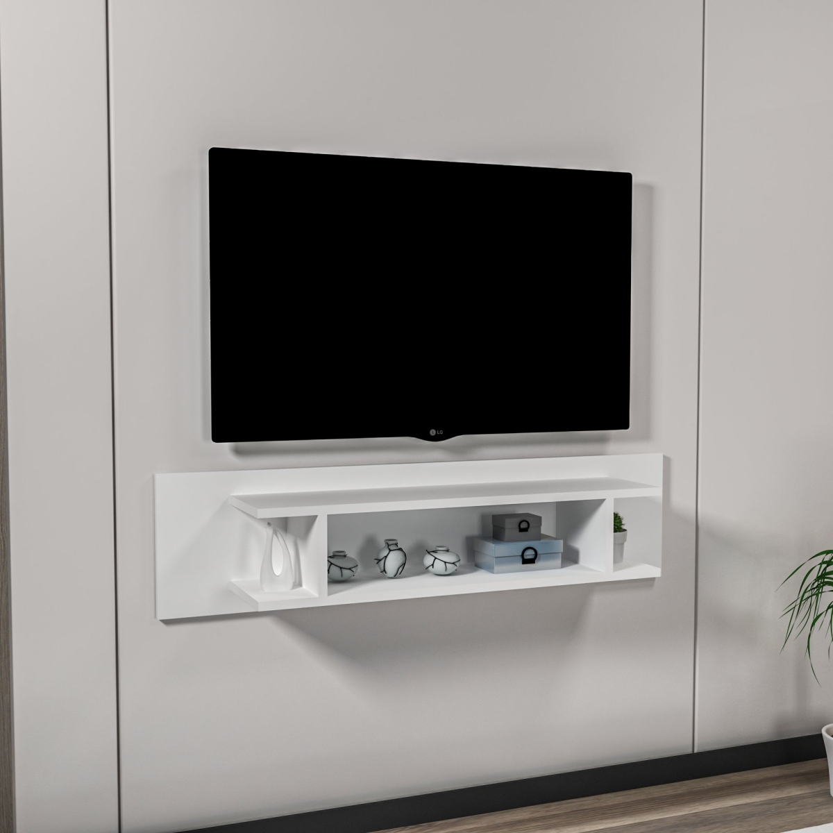 Note that the TV stand is not designed to hold a TV, instead both the stand and the TV must be mounted to the wall separately.