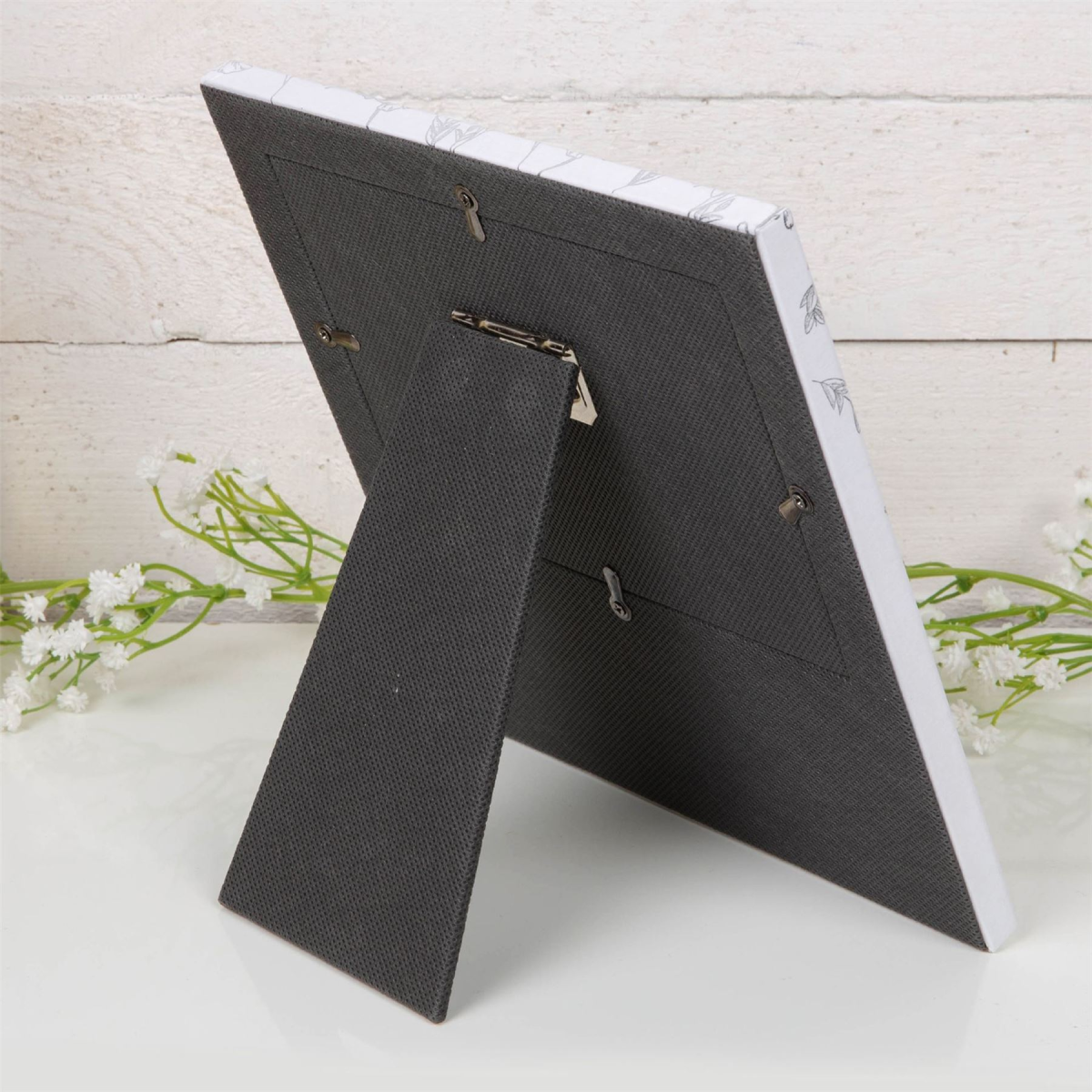 - Crisp white paperwrapped frame