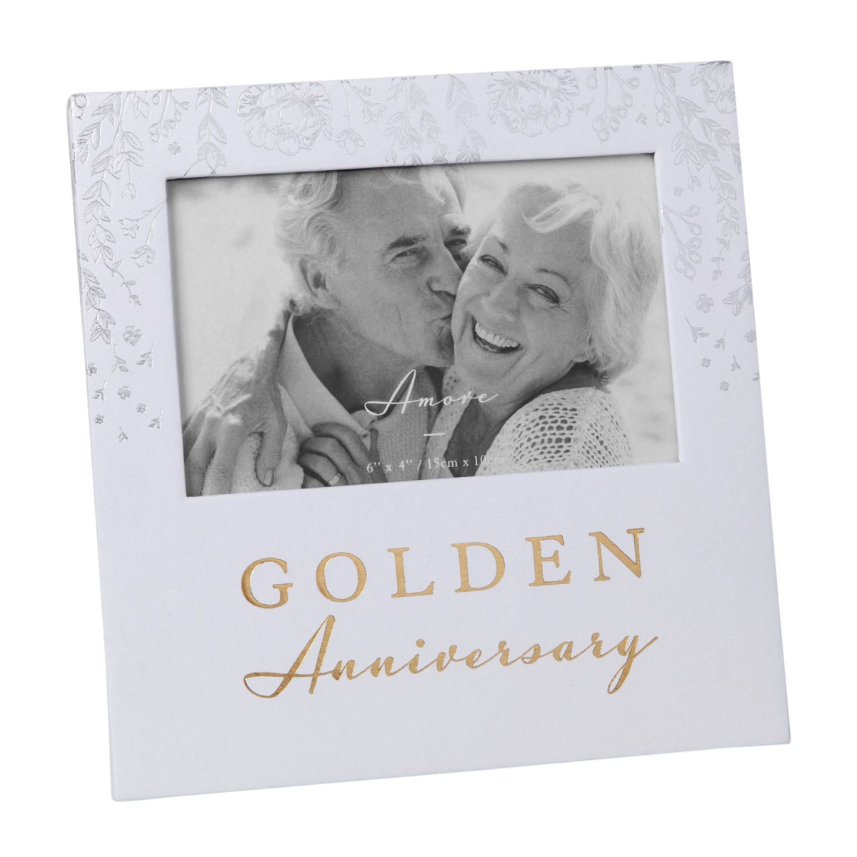 Give a precious moment from your 50th anniversary its chance to shine with this beautiful gold & silver foil embossed photo frame. From AMORE BY JULIANA� - timeless giftware to celebrate the enduring wonder of love.