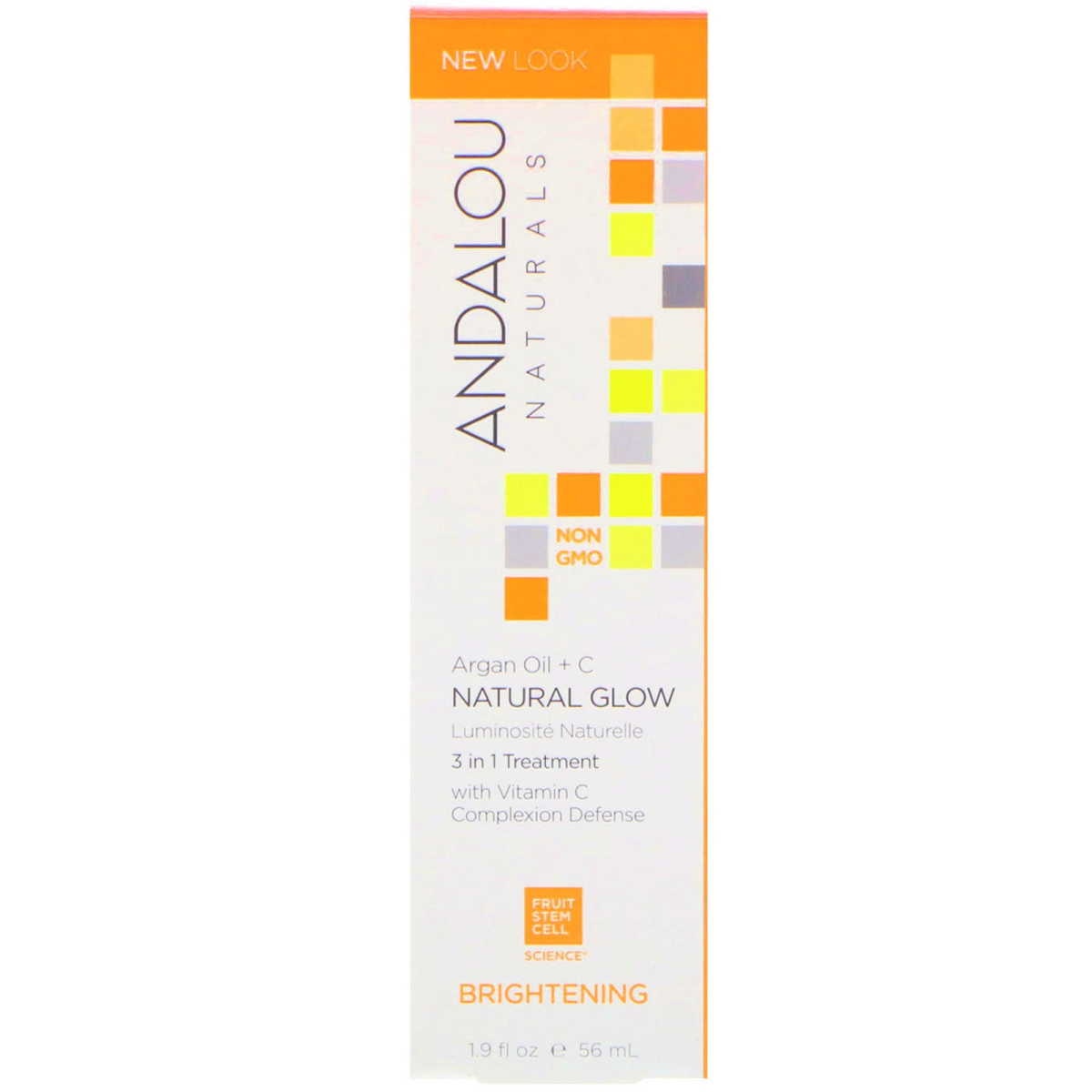 Andalou Naturals, Natural Glow, 3 in 1 Treatment, Argan Oil + C, Brightening, 1.9 fl oz (56 ml)