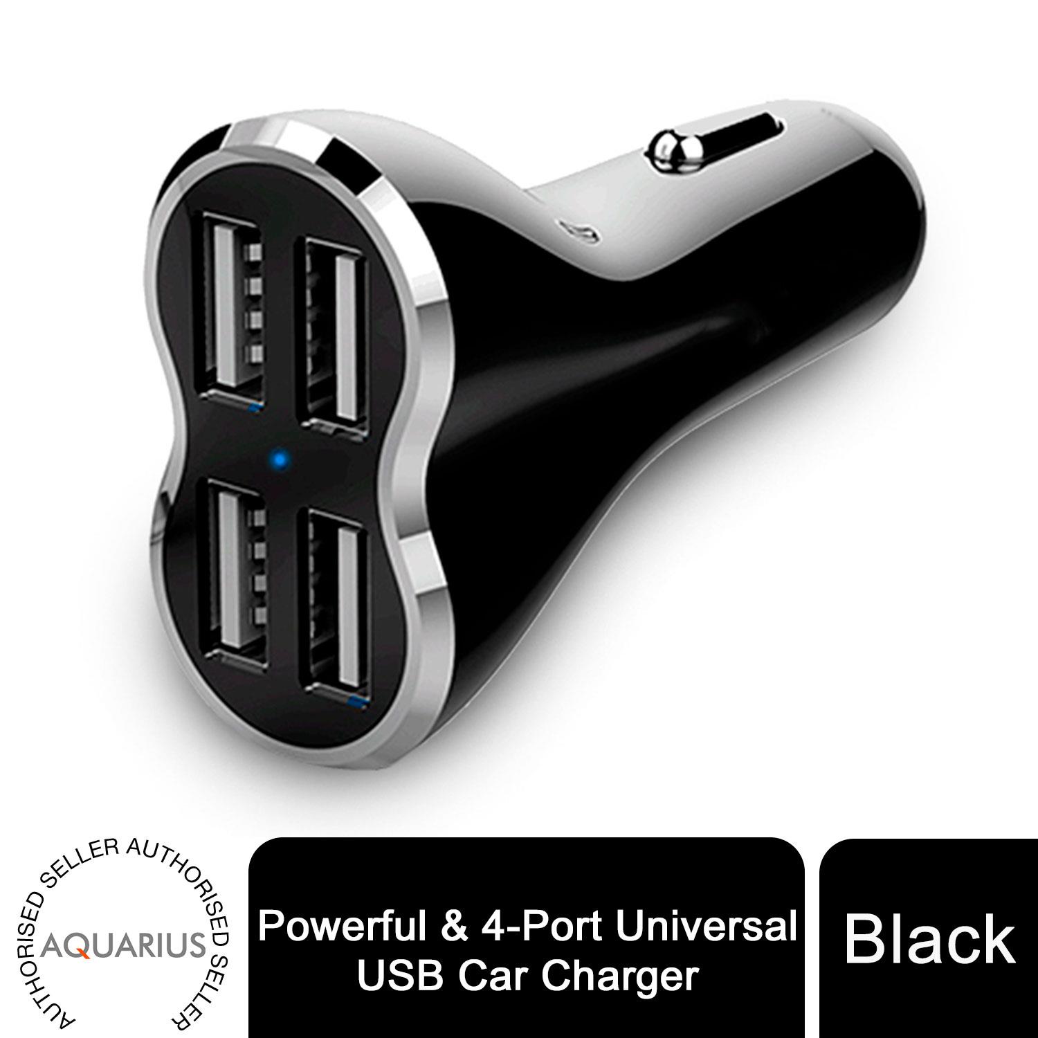 Aquarius Powerful & 4-Port Universal USB Car Charger Black