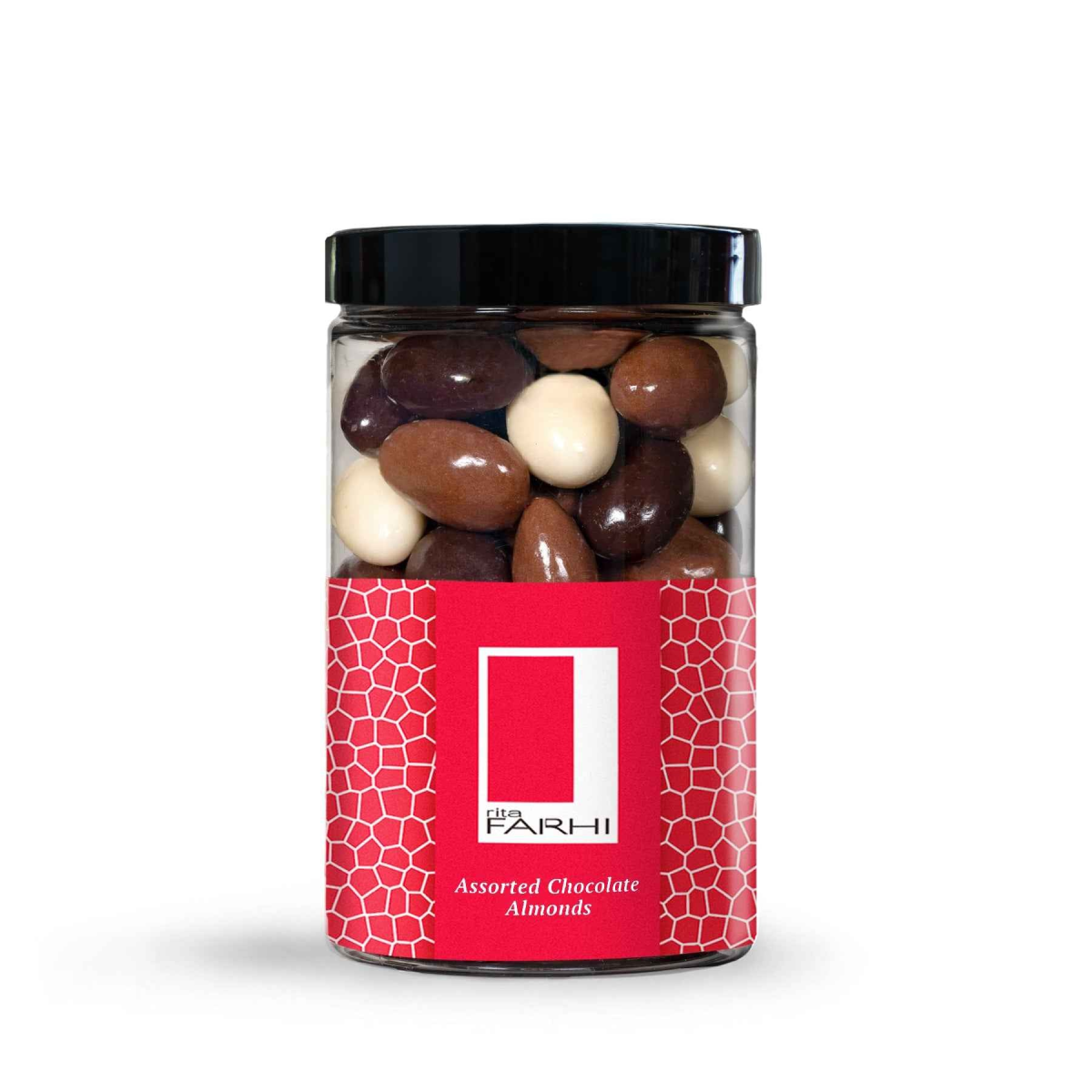 This selection of mouth-watering milk, dark and white chocolate coated almonds, will always be warmly received. We carefully select our almonds for their plumpness and texture. After being ripened by the warm subtropical Californian sun, they're lightly air roasted to bring out their best flavour. Next they're encased in quality Belgian dark, milk and white chocolate for the ultimate, luxurious treat in a sweet small gift jar.