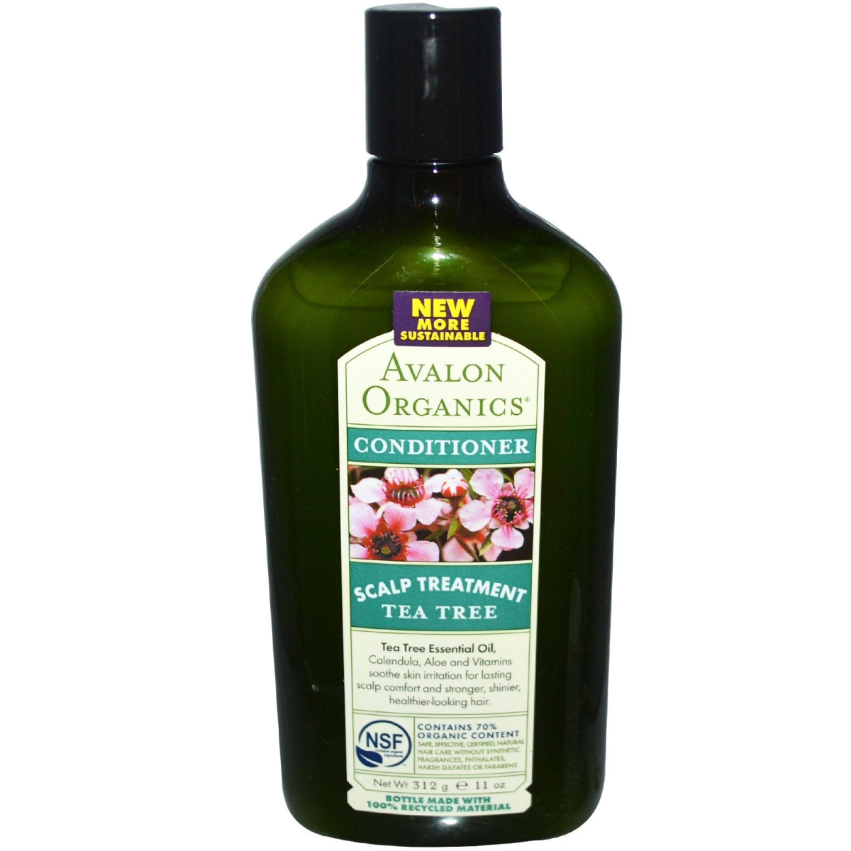 New More Sustainable NSF - Contains Ingredients Contains 70% Content Bottle Made with 100% Recycled Material Tea Tree Essential Oil, Calendula, Aloe and Vitamins soothe skin irritation for lasting scalp comfort and stronger, shinier, healthier-looking hair. Safe, effective, certified, natural hair care without synthetic fragrances, phthalates, harsh sulfates or parabens. Rich plant emollients plus nourishing Shea Butter, Calendula, Vitamin E, Eucalyptus, Wheat Protein and Tea Tree Oil purify and balance moisture levels for lasting comfort and soft, touchable hair.