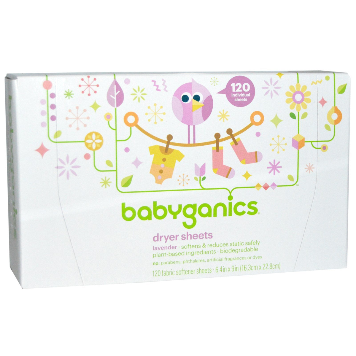 BabyGanics, Dryer Sheets, Lavender, 120 Fabric Softener Sheets