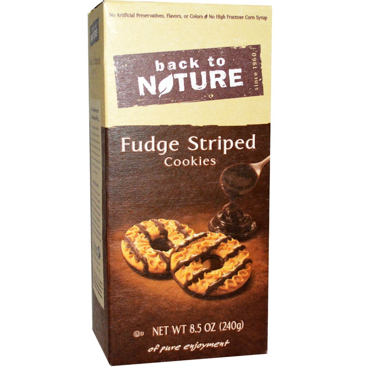 No Artificial Preservatives, Flavors, or Colors No High Fructose Corn Syrup Since 1960 8.5 oz of Pure Enjoyment Simple Ingredients. Simply Delicious. Simply Good. For over 50 years, Back to Nature has passionately created foods with wholesome grains, real nutrition, and the delicious flavors of nature free from artificial ingredients. We give people truly flavorful, wholesome foods made with simple ingredients. Here's the Great Stuff about Fudge Striped Cookies The finest vanilla beans are cultivated in the rich, fertile soil on the island of Madagascar. This aromatic spice has found its way into each of our cookies and provides a sweet, delicate flavor.
