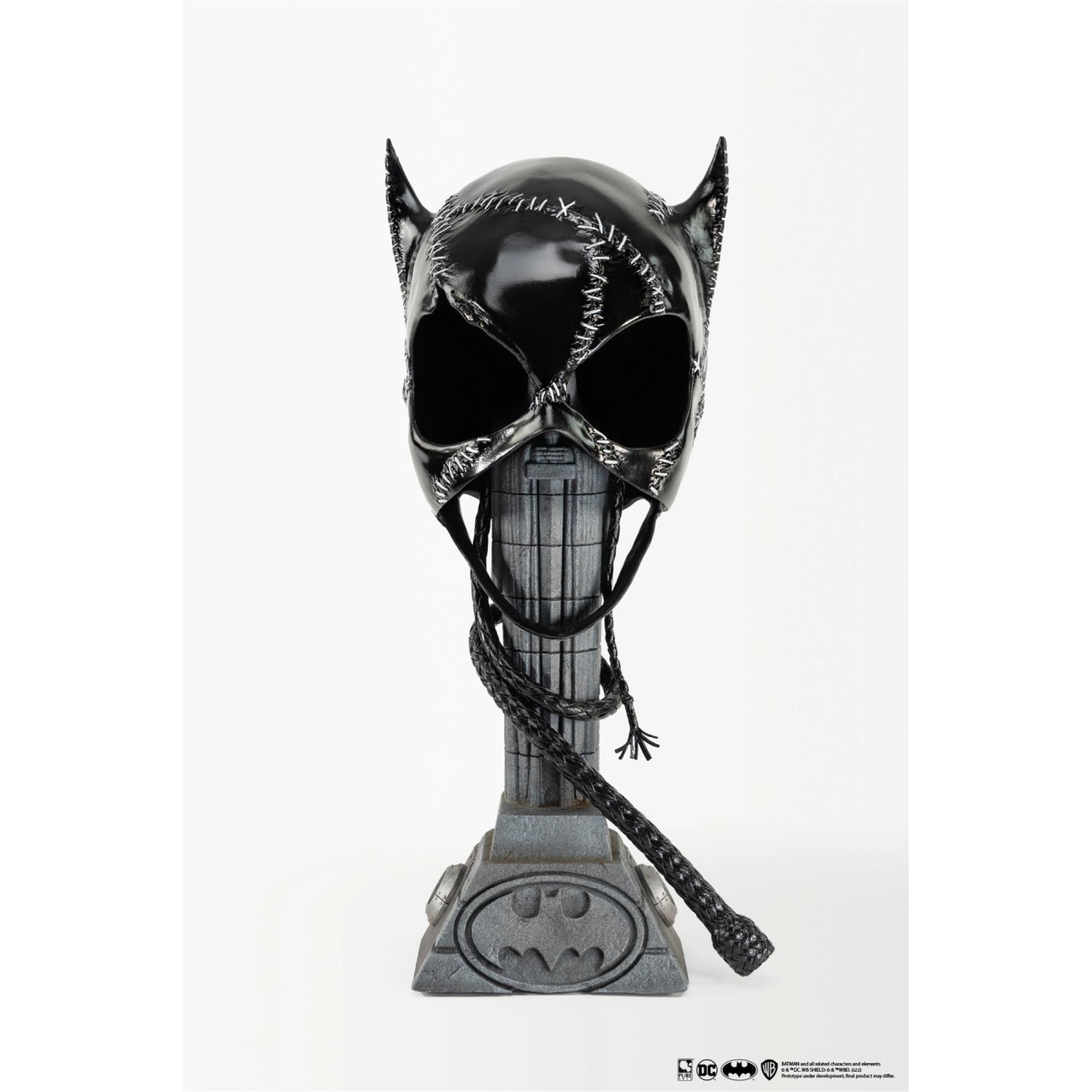 "I don't know about you, Miss Kitty, but I feel so much yummier." Catwoman PureArts is proud to introduce a new level of movie replica accuracy with our Batman Returns Catwoman 1:1 Scale Mask Replica. Featuring our exclusive poly-based casting material developed specifically for our Batman products, this mask looks and feels like real high gloss latex, but will never deteriorate. The white threading effect is sculpted exactly like the screen-used hero mask and includes a removeable whip and the Mayoral House statue base. Product features: Based on screen-used hero mask Mixed media for accurate prop textures and feel Looks and feels like real glossy latex Polyresin Gotham City mayoral house base Removeable whip replica Product details: Licensed by Warner Bros. Material: Mixed Media (Poly based resin materials) Scale: 1:1 Standard Edition Size: 999 Product Information: Qty: 1 mask replica (non-wearable) Height: 19 in (48 cm) Width: 8.5 in (21.5 cm) Depth: 10 in (25.5 cm) Weight: 3.6 kg BATMAN and all related characters and elements DC and Warner Bros. Entertainment Inc. WB SHIELD: WBEI. (s22) PLEASE NOTE WE ORDER THE PRODUCT DIRECT FROM THE UK WAREHOUSE SO WE PLACE A LEAD TIME OF 14 DAYS TO RECIEVE THEN THE ITEM IS POSTED/SHIPPED TO THE BUYER
