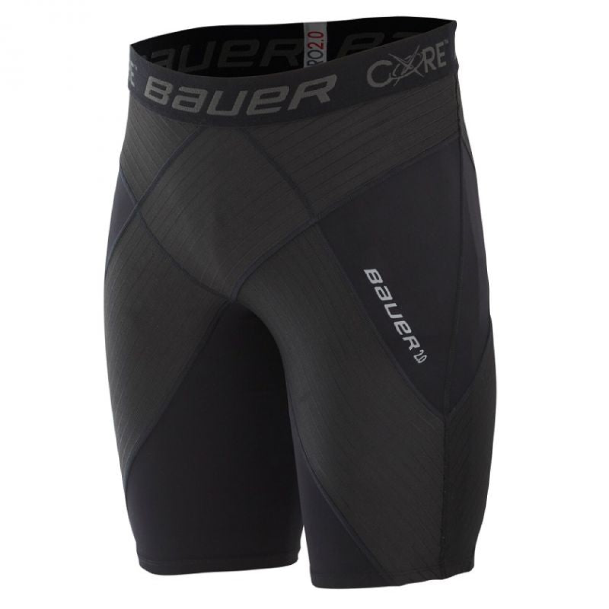 Provides 60% more directional support than regular compression shorts for the lower back, pelvis, hips and groin while providing maximum movement Elastic waistband with BAUER/CORE logo.
